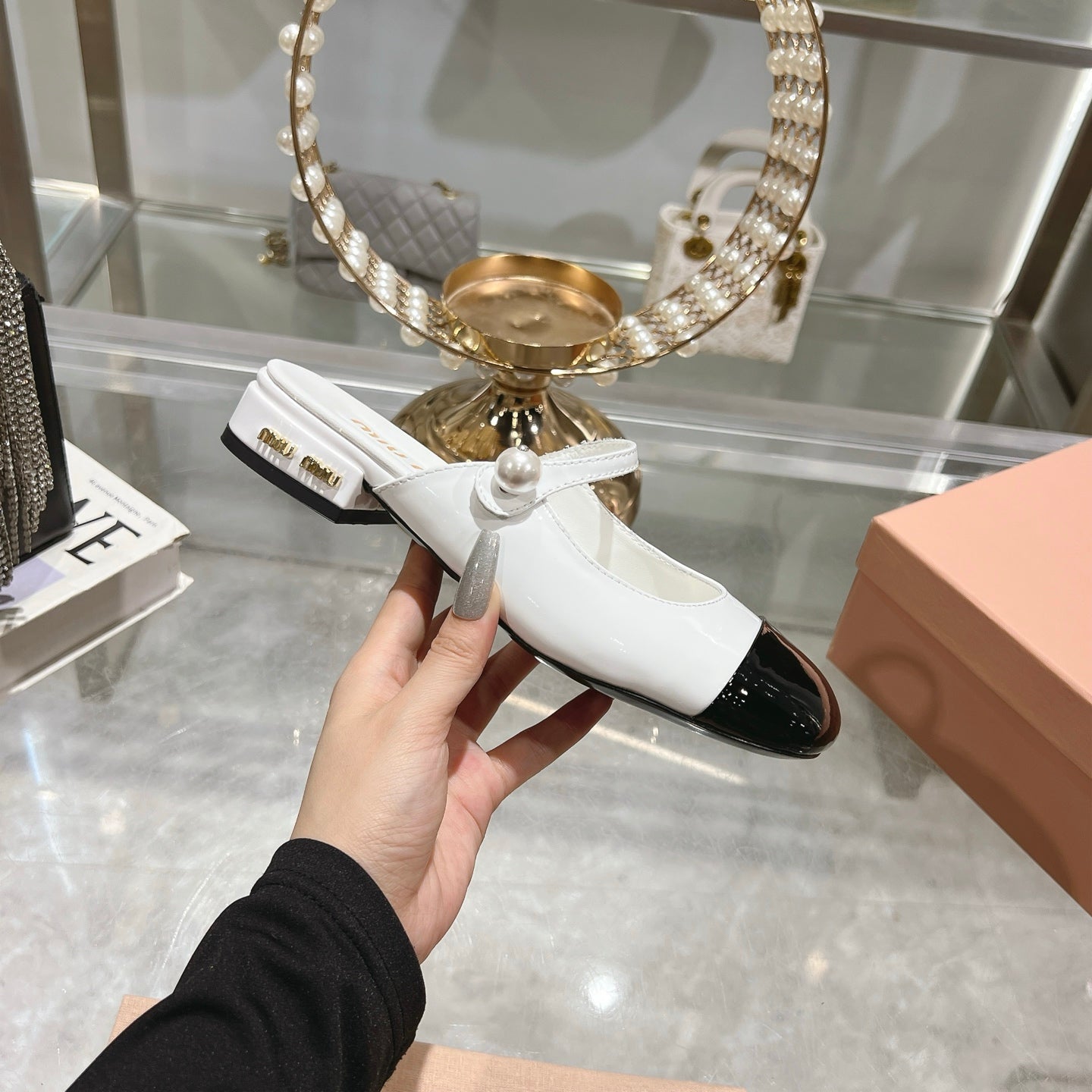 Miu 25C Flat Mule White Patent Leather 235306