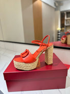 VT Espadrilles Platform Sandals Orange Calfskin 369494