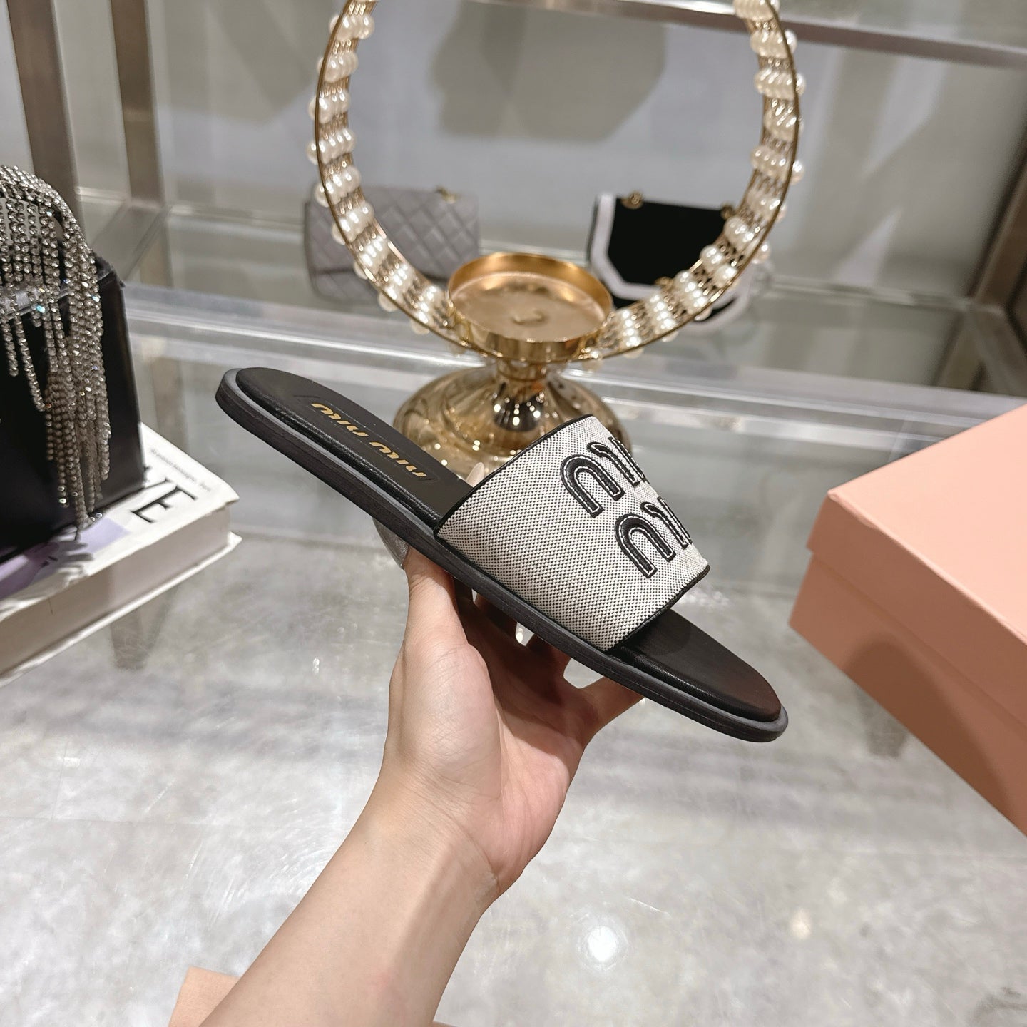 Miu 25C Sneaker Mules Colonial Beige Demin Fabric 235319