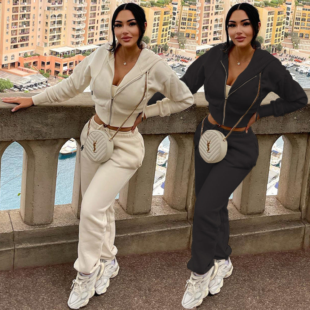 Adoptez un style casual et élégant avec l’Ensemble Confort Chic Vittoria. Composé d’un hoodie court zippé et d’un pantalon à taille élastique, cet ensemble allie confort et tendance. Parfait pour une journée détente ou une sortie stylée, il vous assure un look moderne et raffiné sans effort.