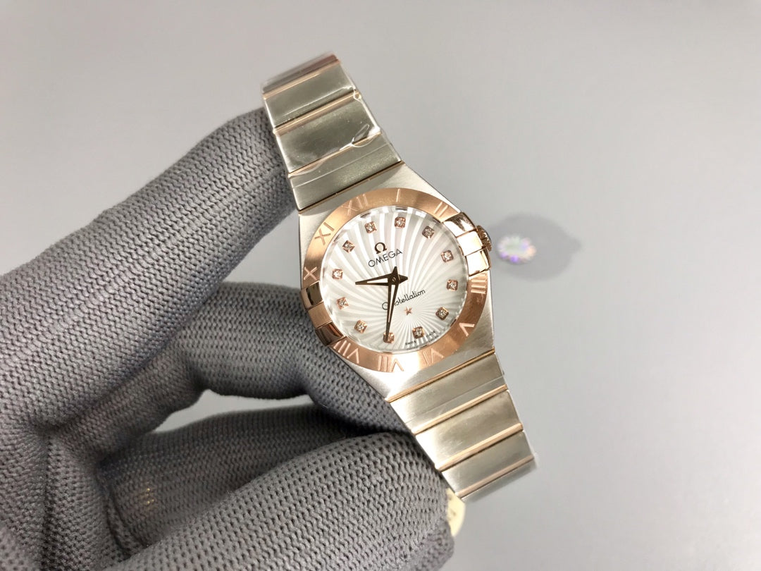 Omega Constellation 27mm Silver Pink Gold White Dial