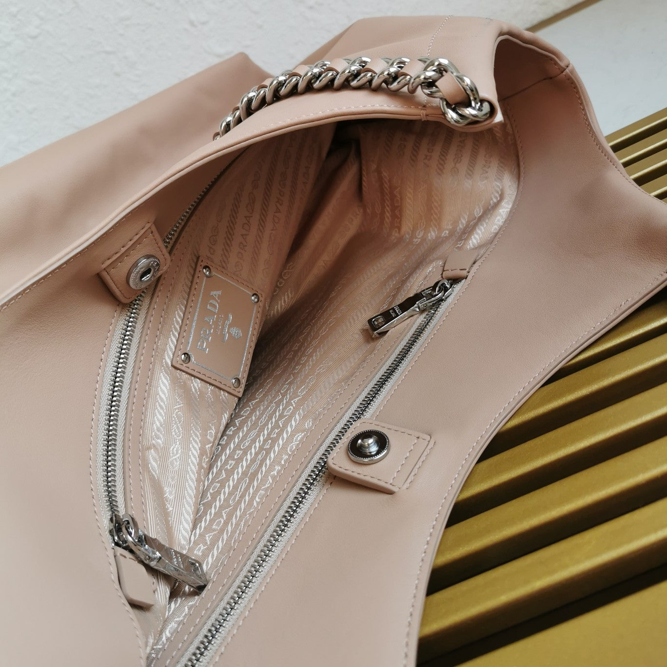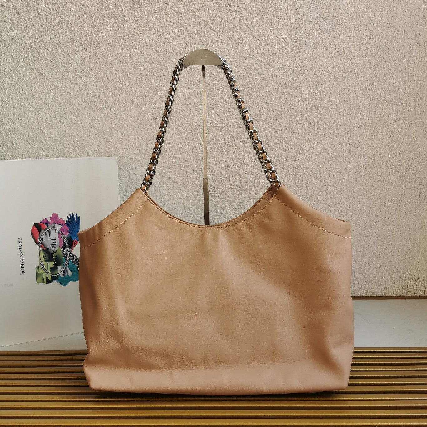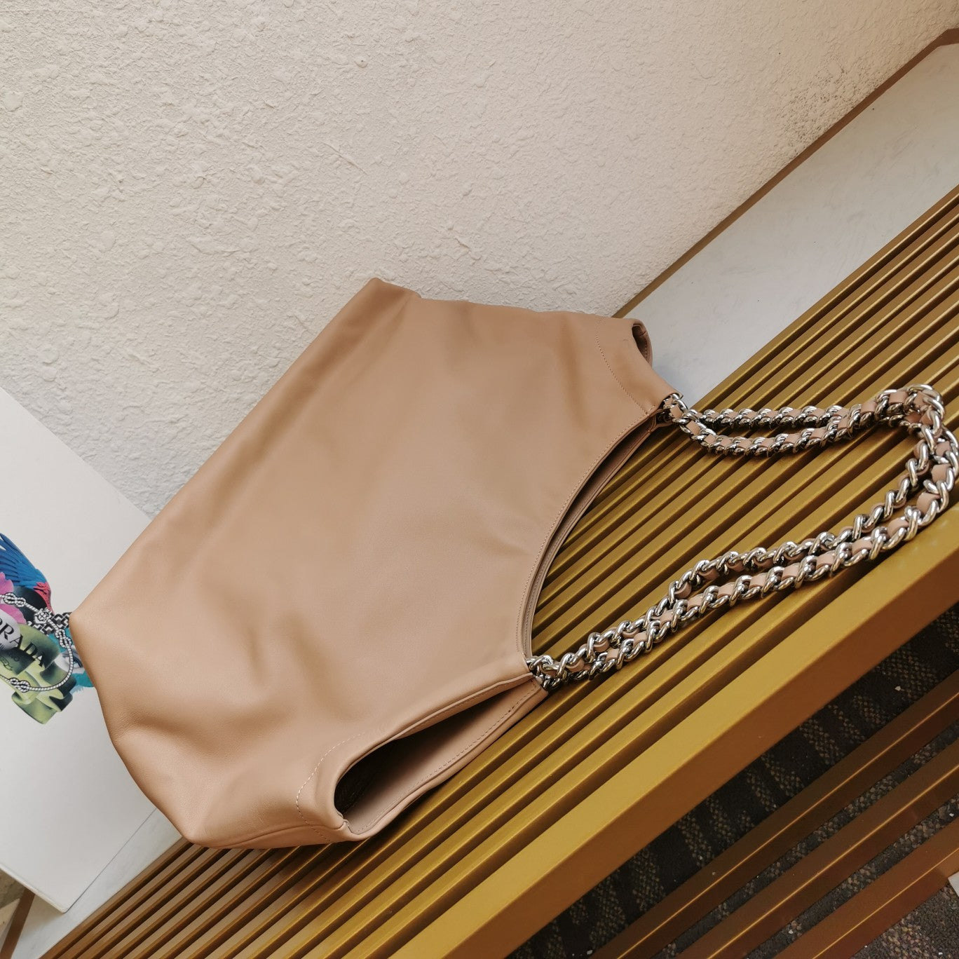 CHAIN TOTE 39 SOFT BEIGE CALFSKIN SILVER HARDWARE