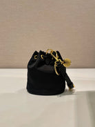 MINI BUCKET BAG 10 IN BLACK RE-NYLON AND SAFFIANO LEATHER STRAP