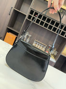 PRA 25 CLEO FLAP SHOULDER BAG IN BLACK BRUSHED LEATHER