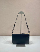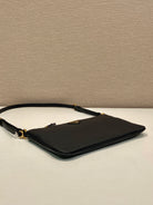 TRIANGLE LOGO SHOULDER BAG 24 IN BLACK SMOOTH CALFSKIN