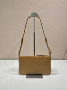 TRIANGLE LOGO SHOULDER BAG 24 IN PEANUT BROWN SMOOTH CALFSKIN