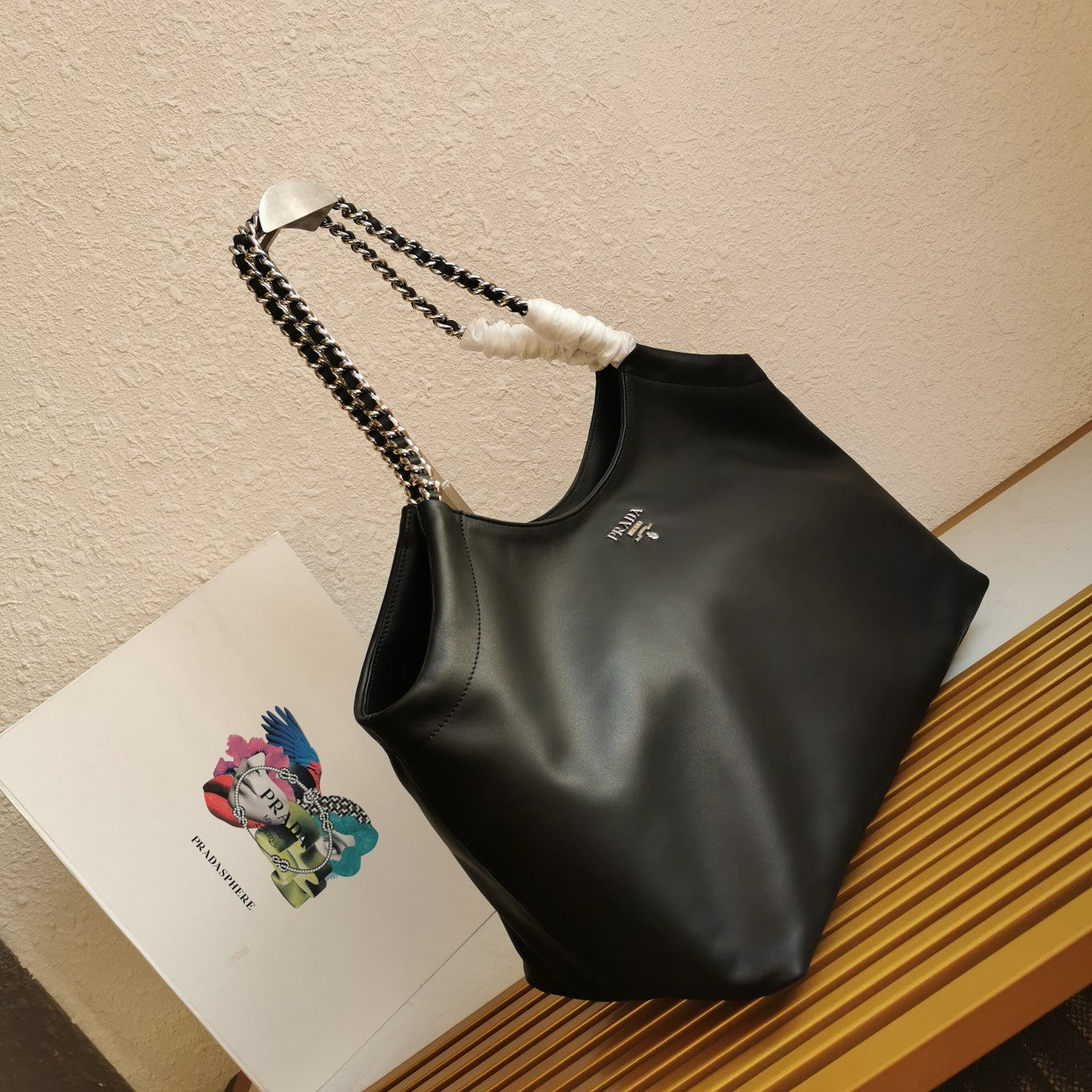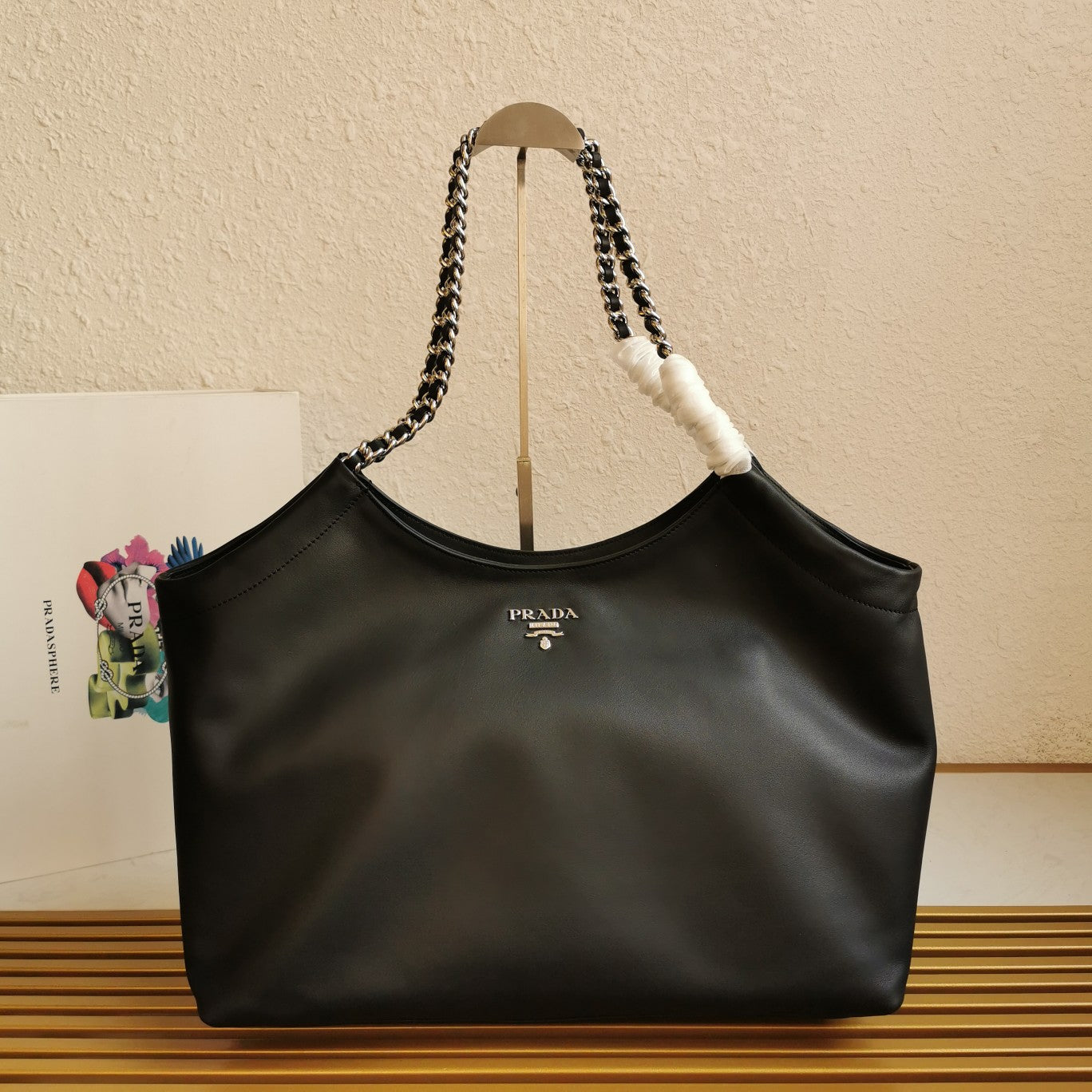 CHAIN TOTE 39 SOFT BLACK CALFSKIN