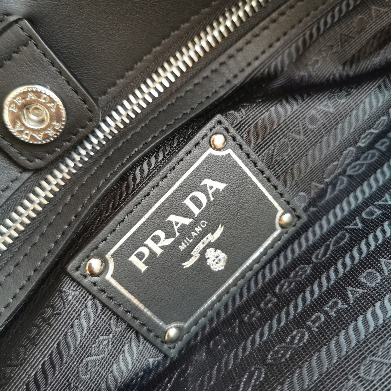 PRA 28 LARGE BLACK CALFSKIN HANDBAG