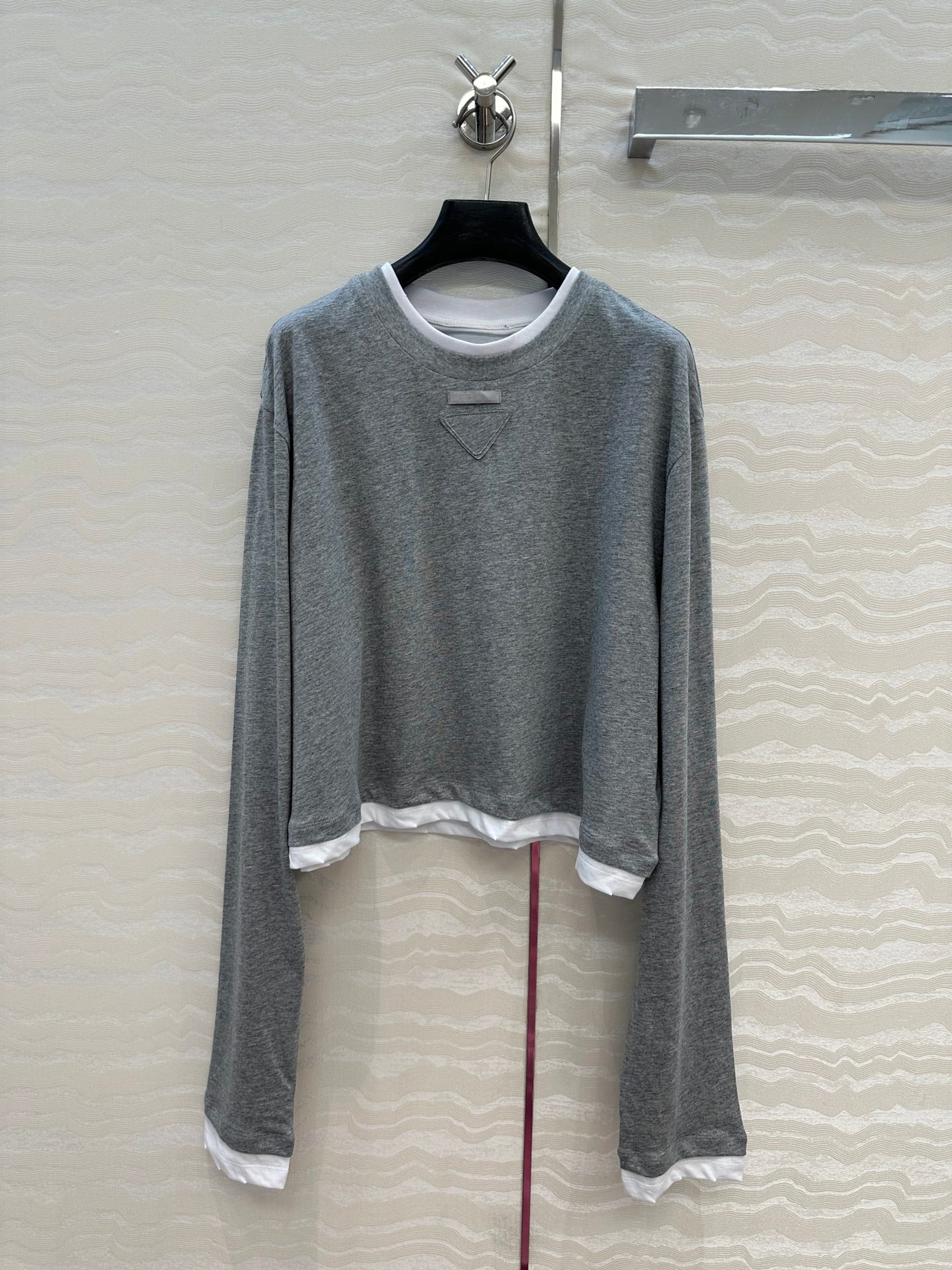 Prada 25 Short-sleeved Sweatshirt Gray mix Red Wool Cashmere