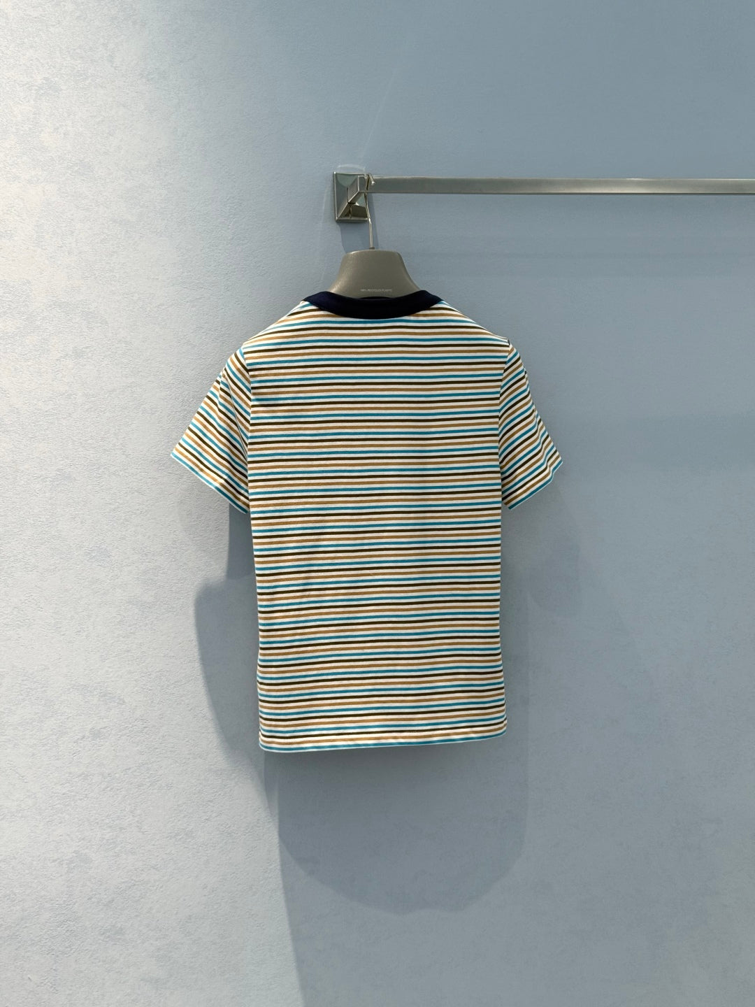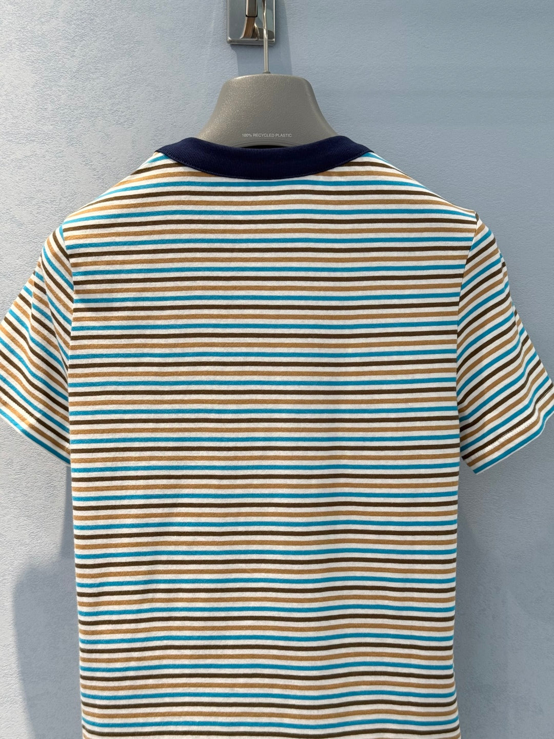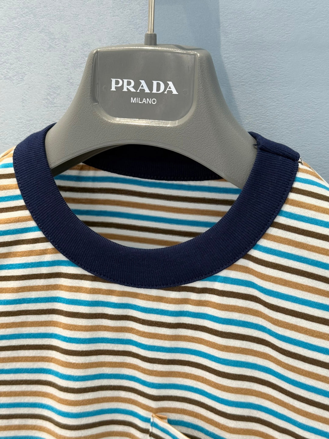 Prada 2025 Striped T-shirt Navy Blue mix colors Cotton