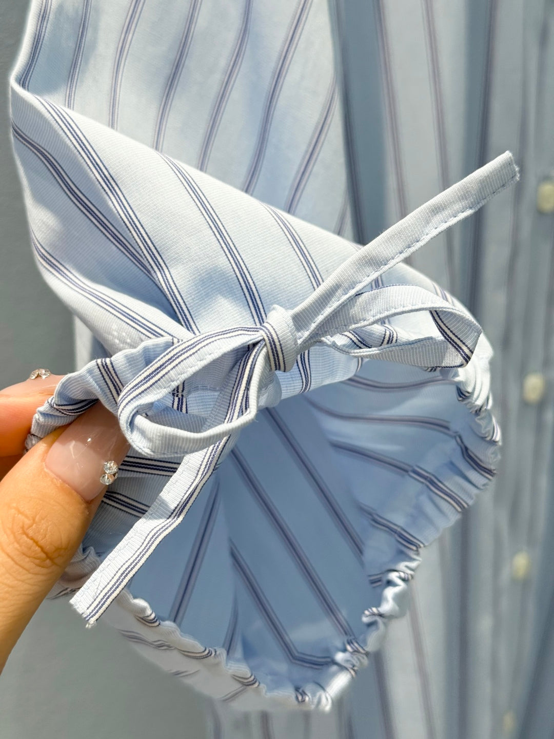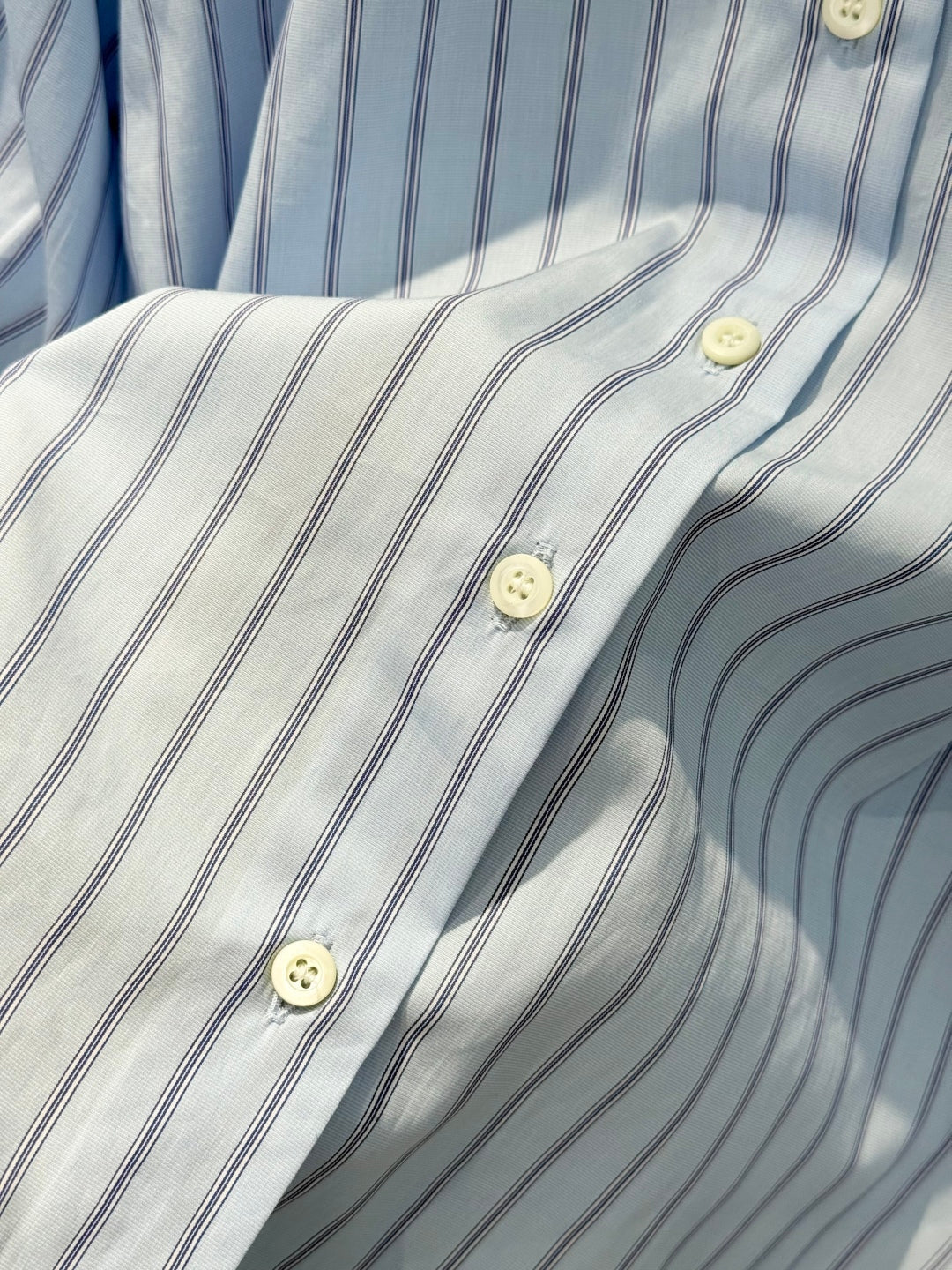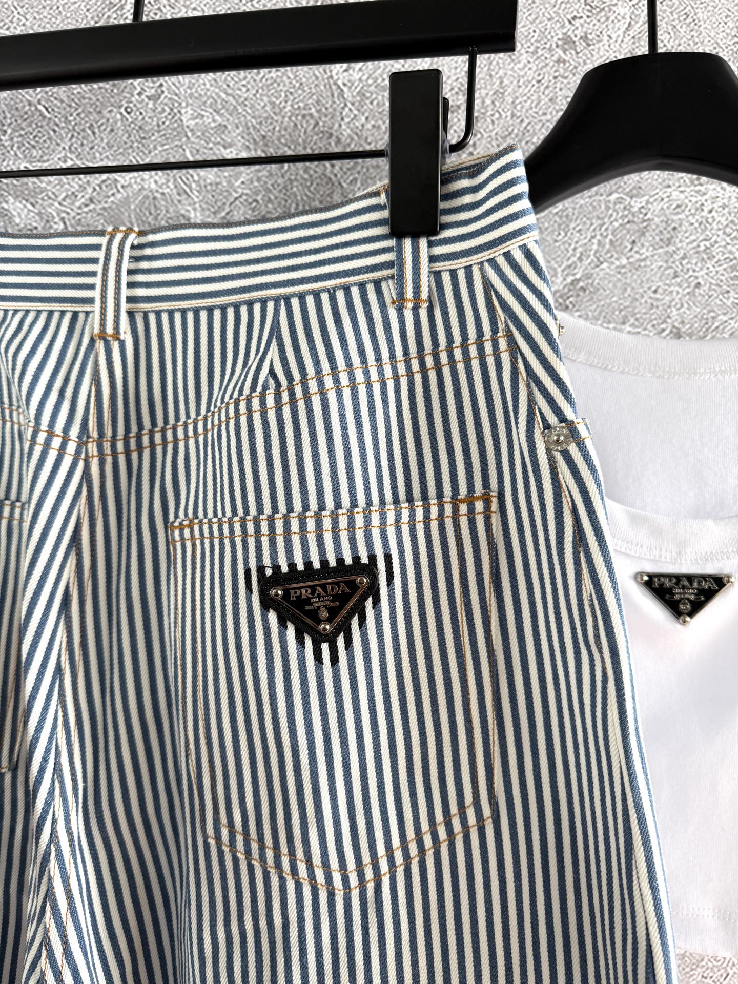 Prada 25 Striped Short-sleeved Collared Shirt Blue Cotton