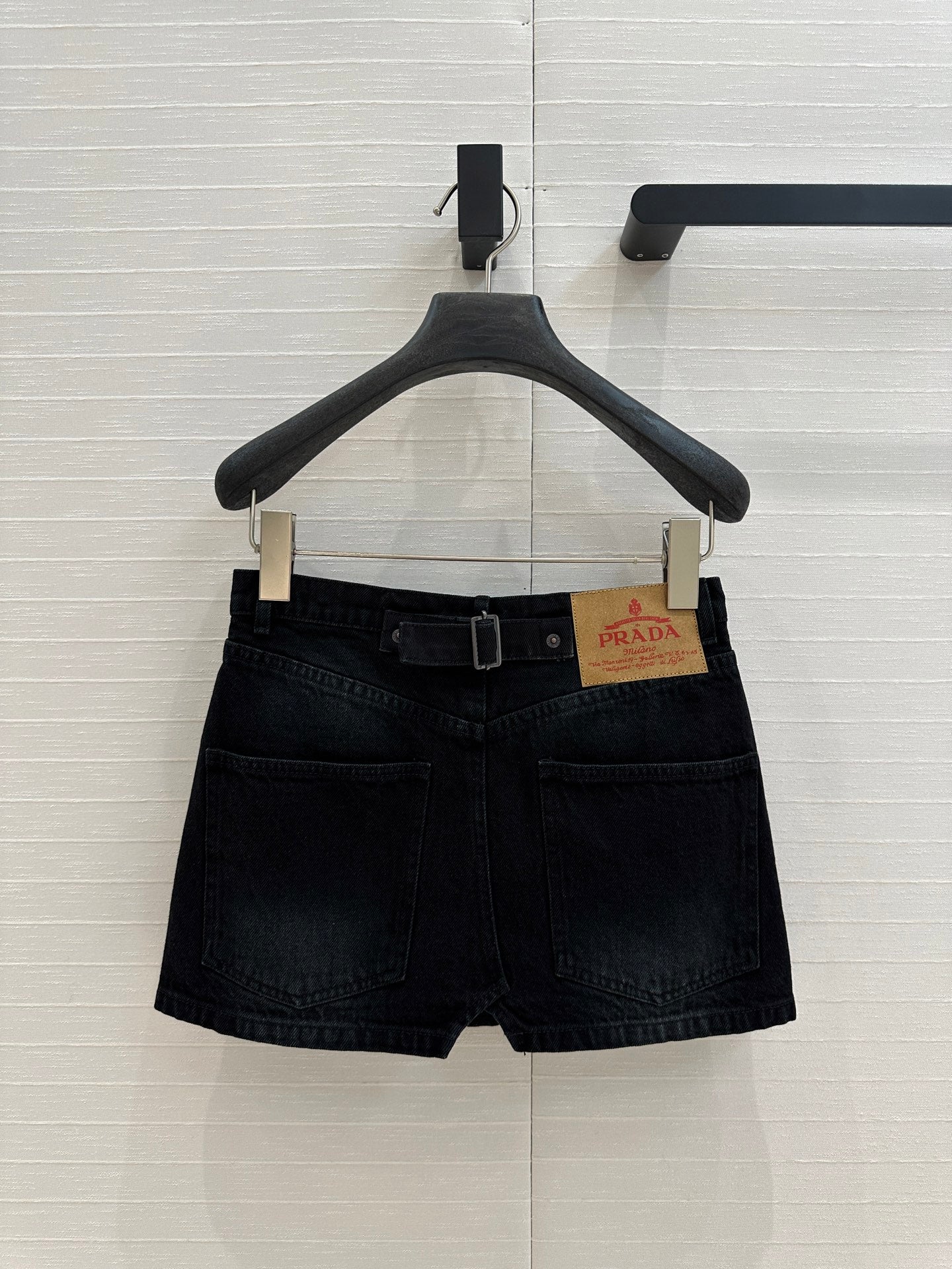 Prada Zipper Pleated Skirt Navy Blue Poliamida