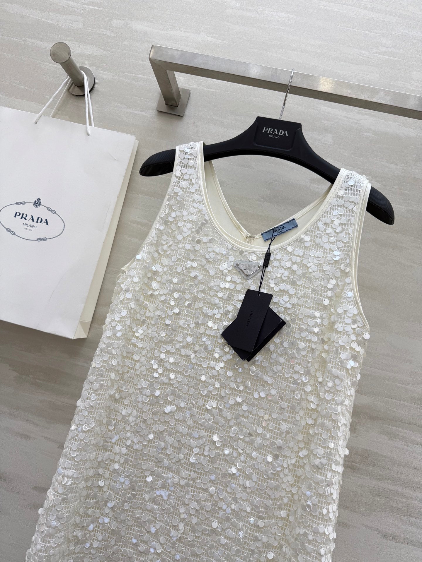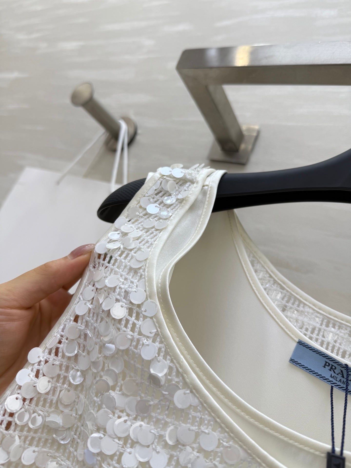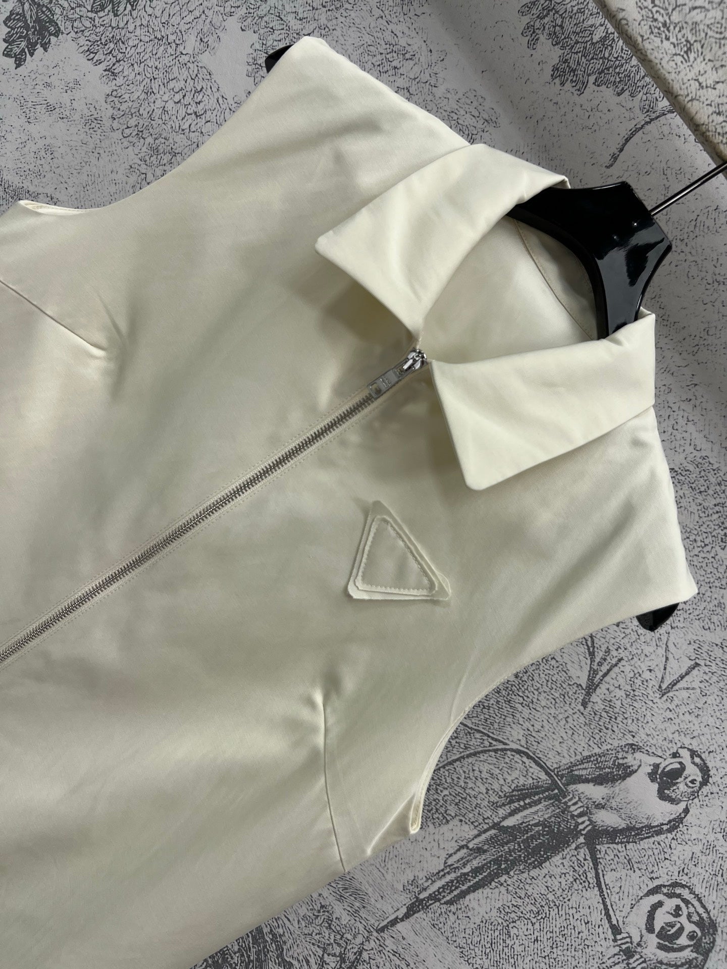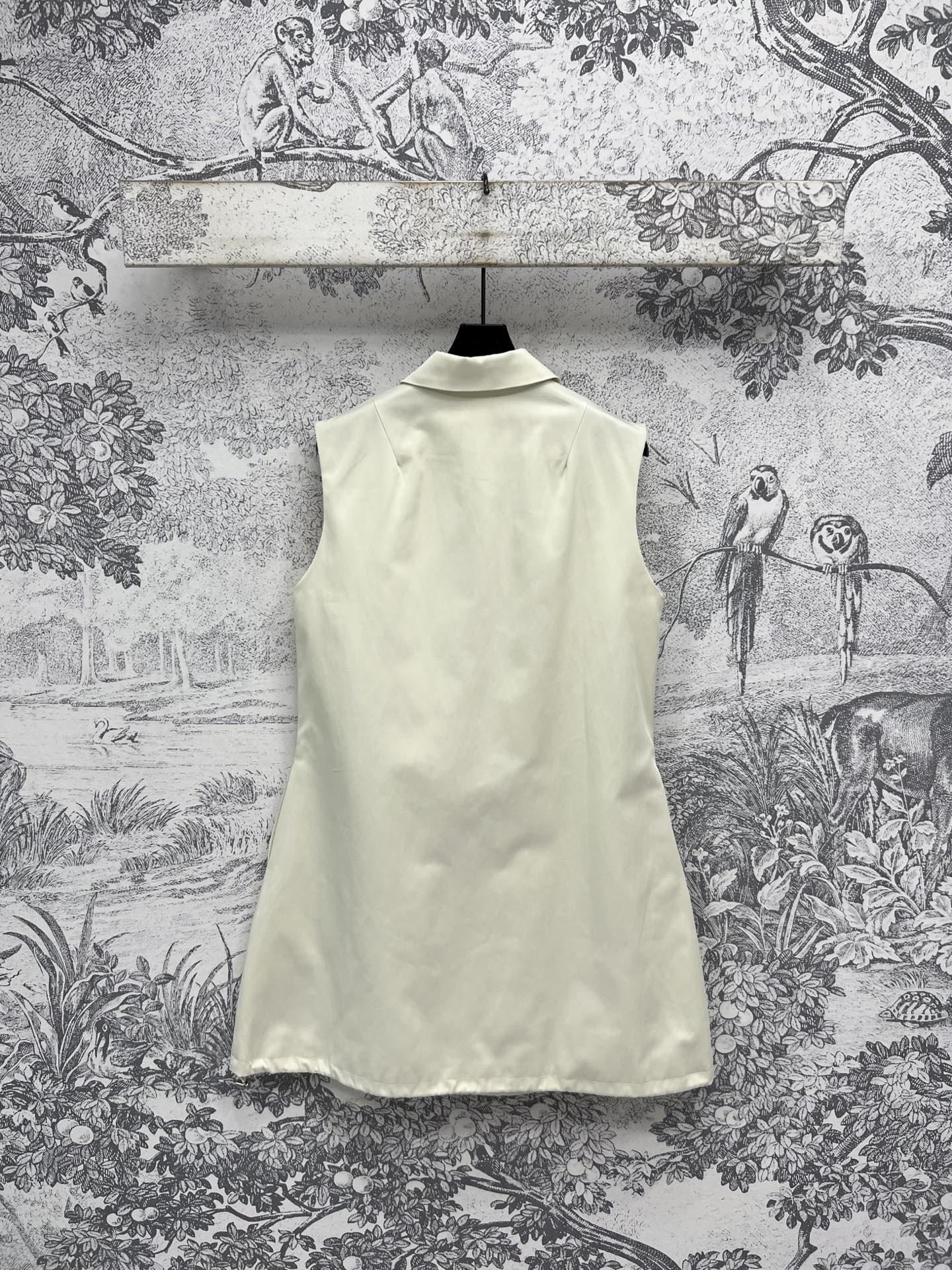 Prada 2025 Sleeveless Dress A-line Babydoll White Polyester