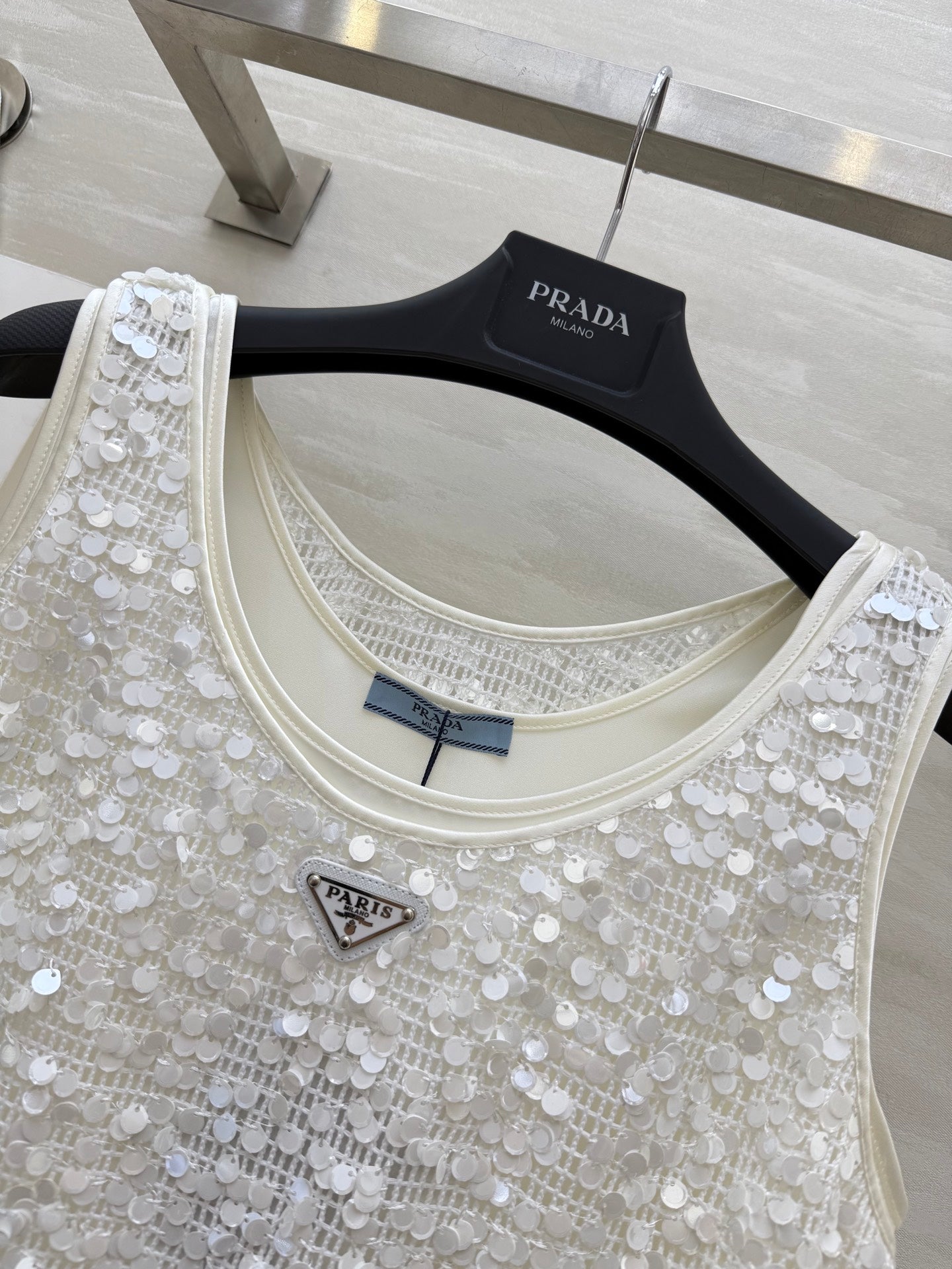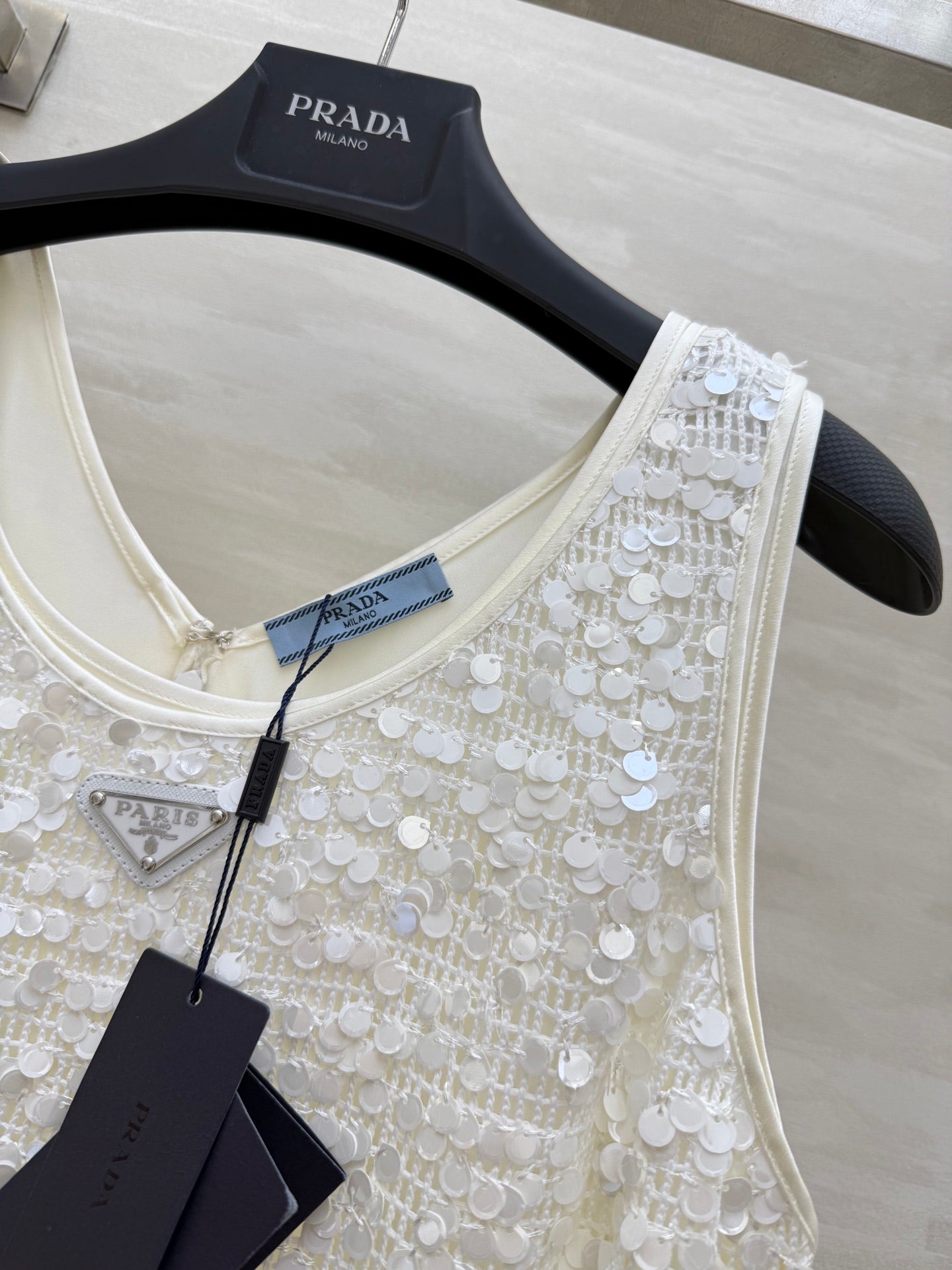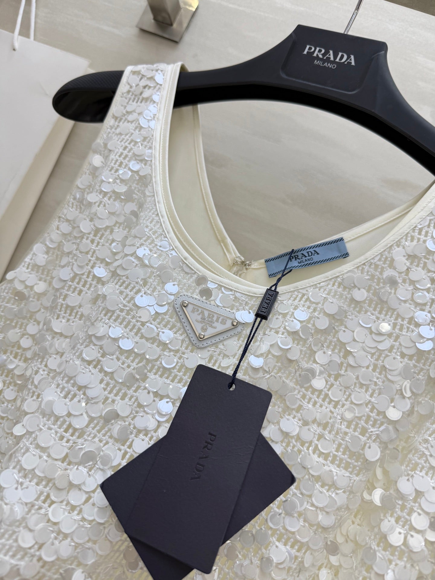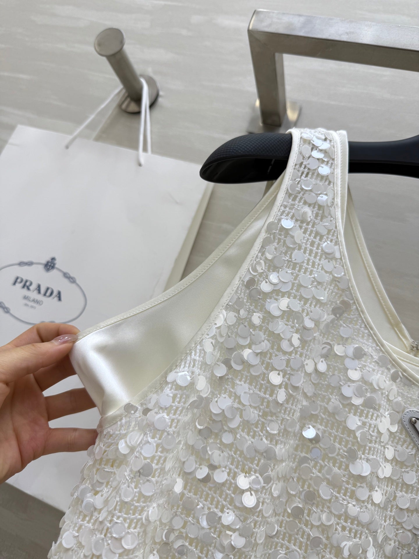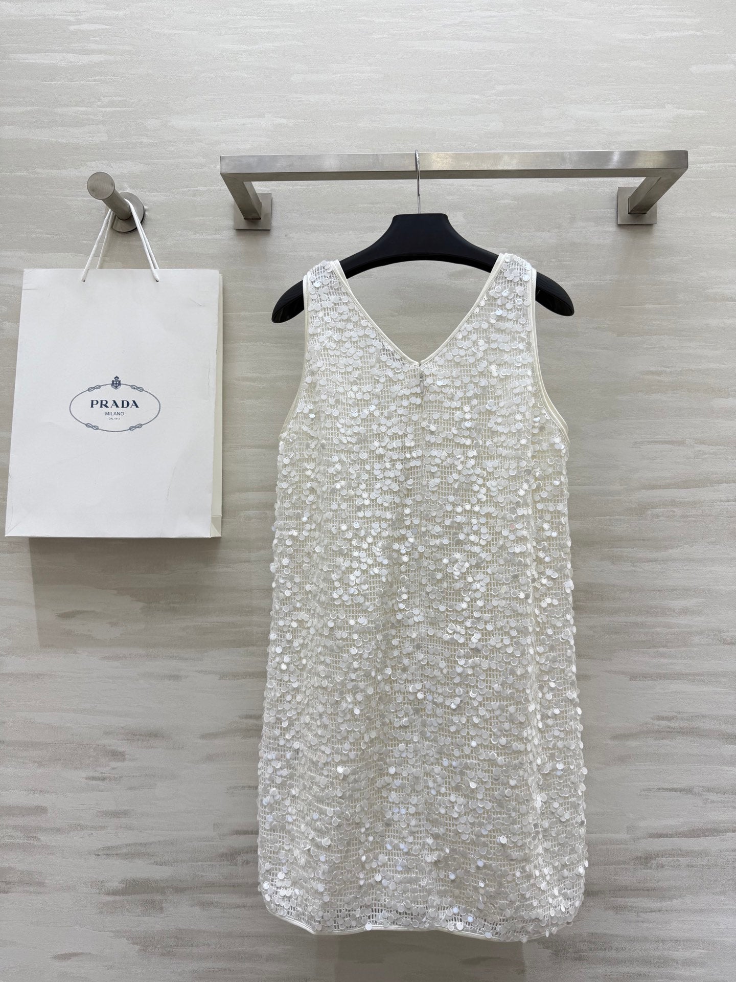 Prada 2025 Sleeveless Dress A-line Babydoll White Polyester