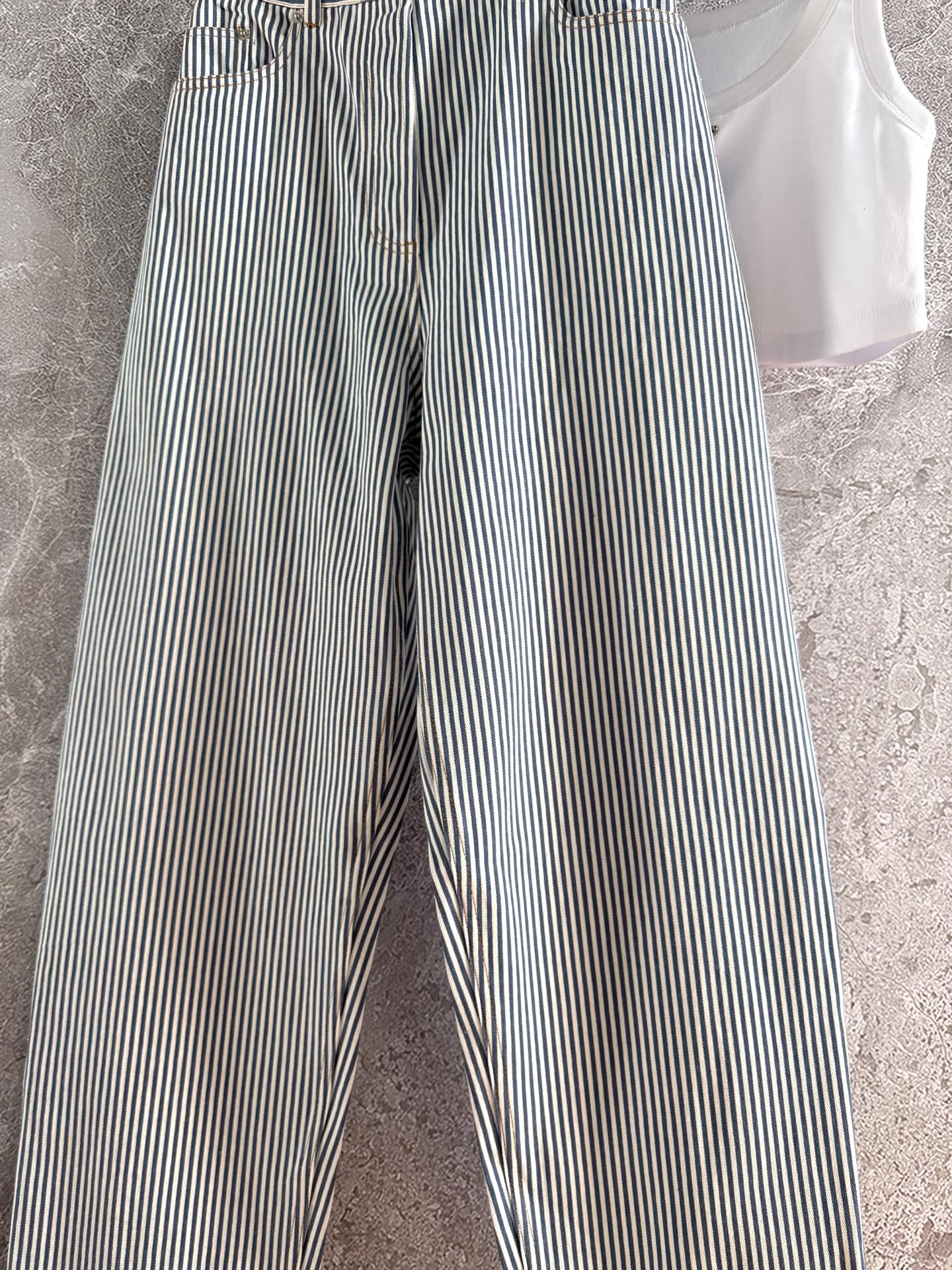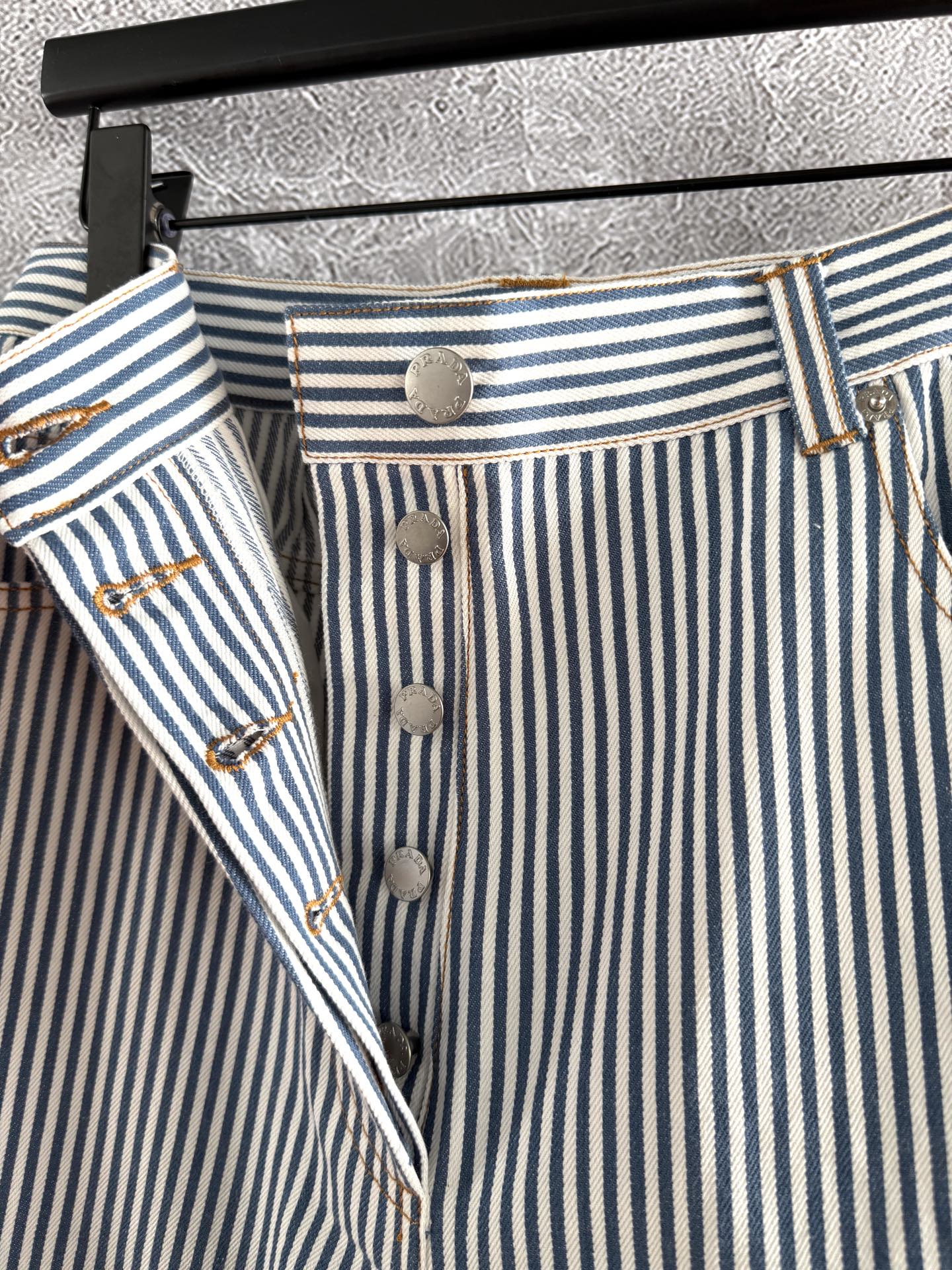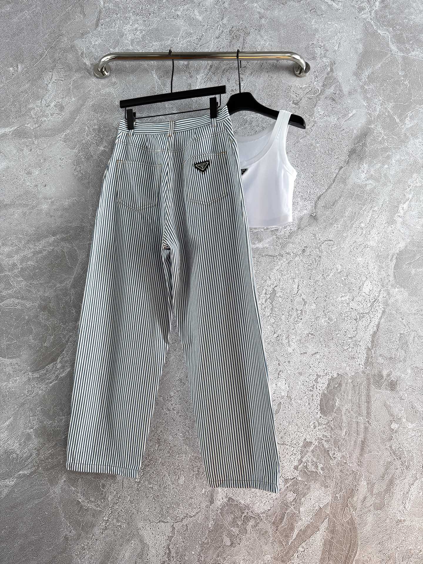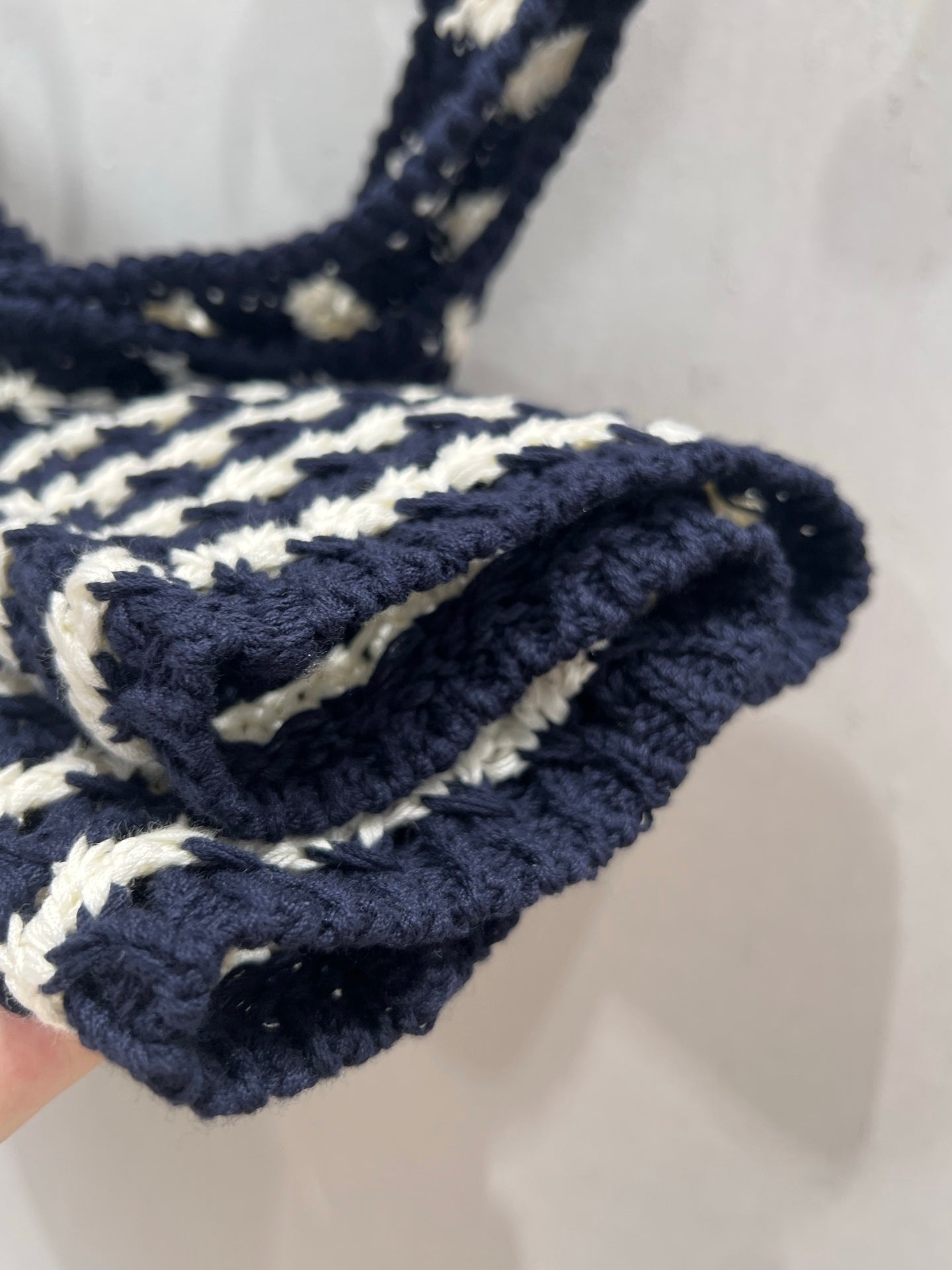 Prada 25 Striped Knitted Crop Top Navy Blue mix White Cotton 219409
