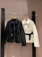 Prada Belted Jackets Black and White Poliamide