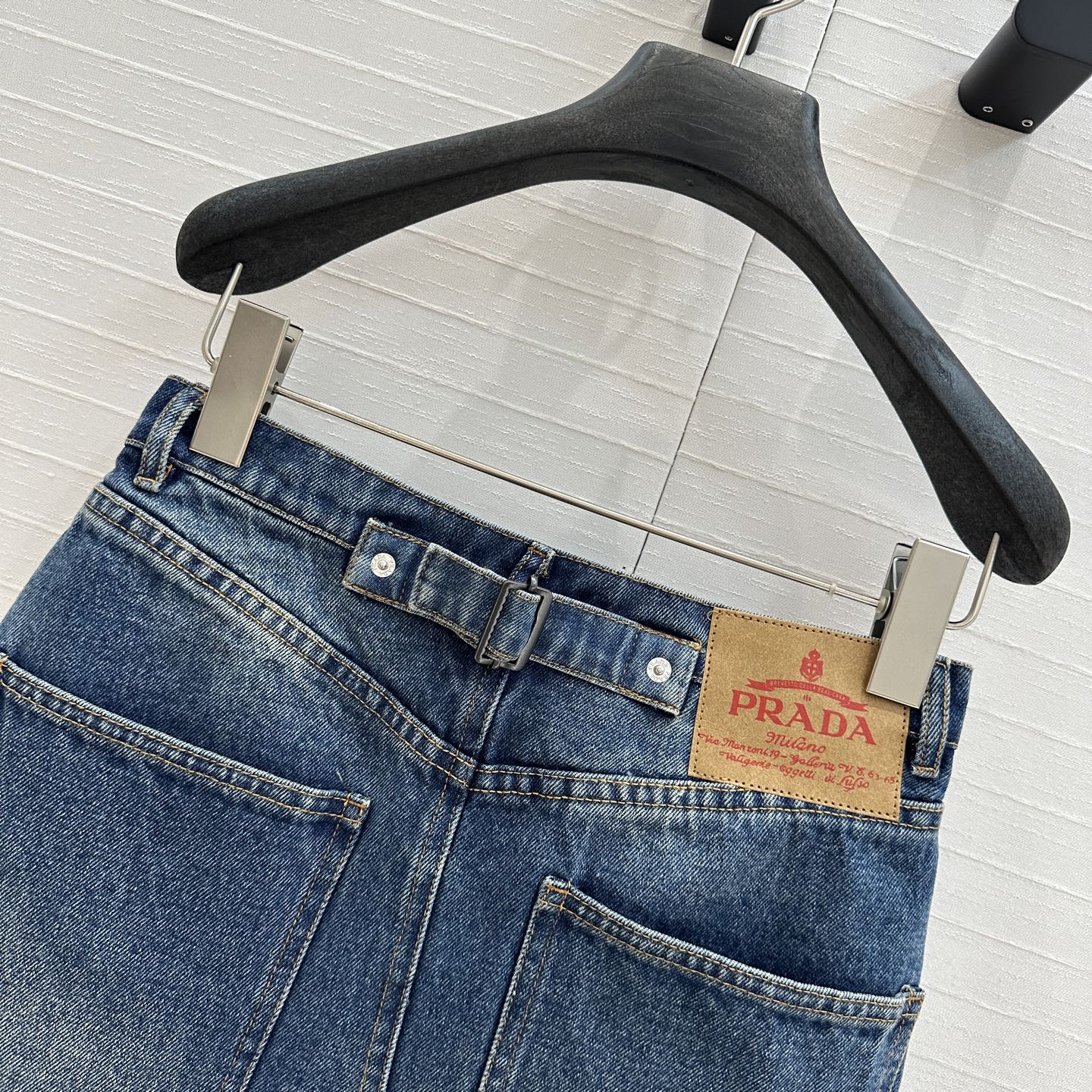 Prada 25 Triangle Straight Denim Pants with belt Cotton 210377