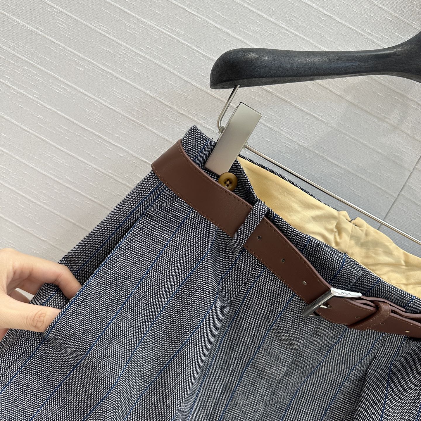 Prada 25 Leather Strap and Webbing Stitching Trousers Wool