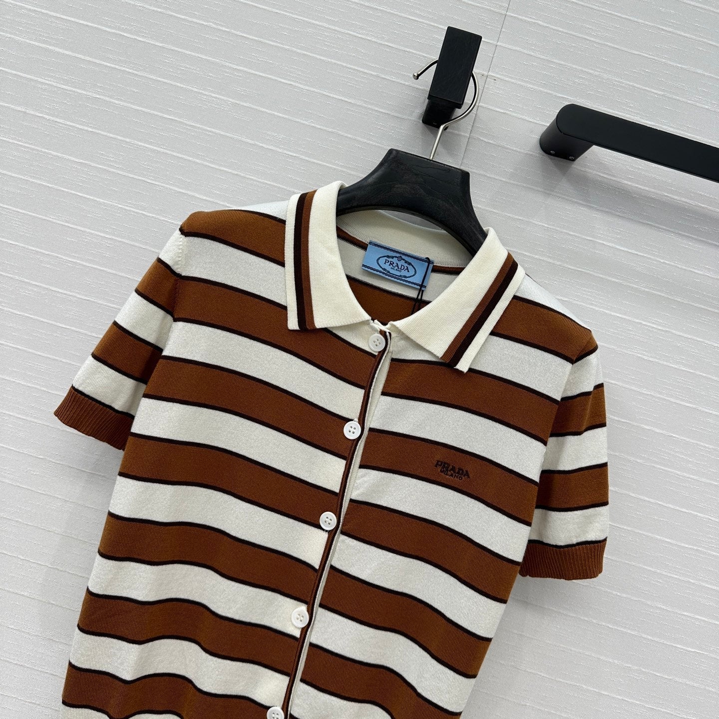 Prada 25 Striped Knitted Polo Short-sleeved Top Brown mix Black Cotton Poliamide 217945