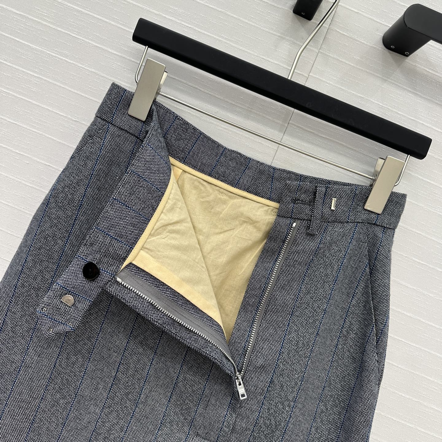 Prada Striped Suit Mid-length Skirt Grey Wool Cotton Polyester