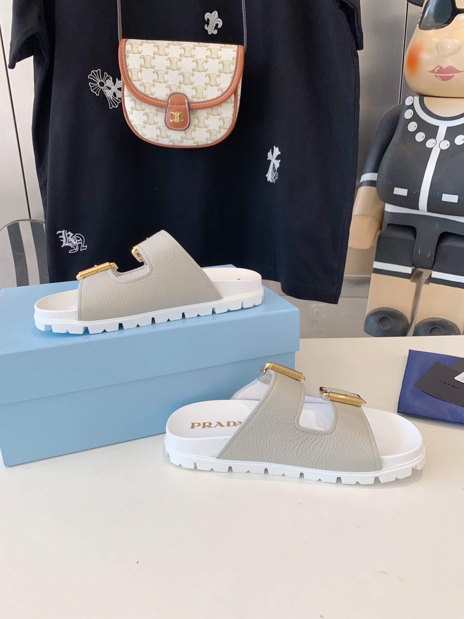 PRA STRAP SLIDES SANDALS WHITE CALFSKIN