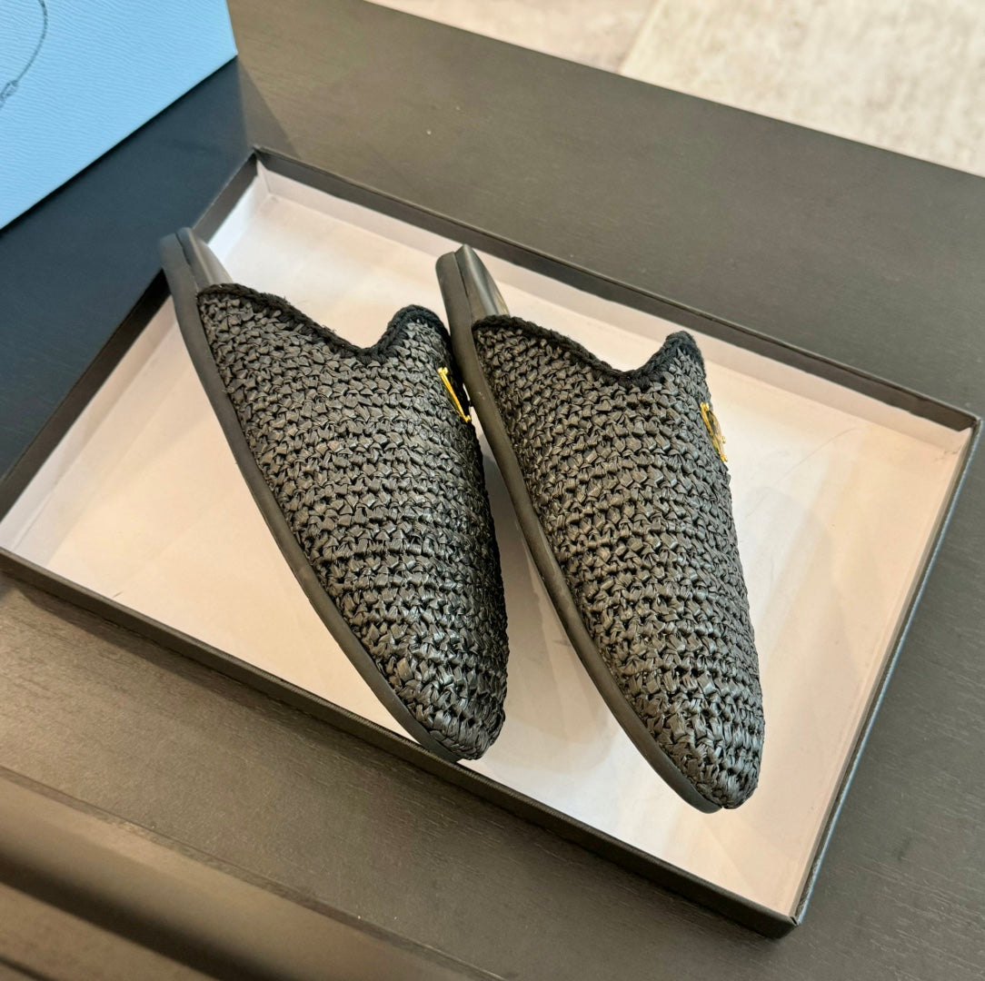 PRA CROCHET SPECIAL MULES BLACK LAMBSKIN
