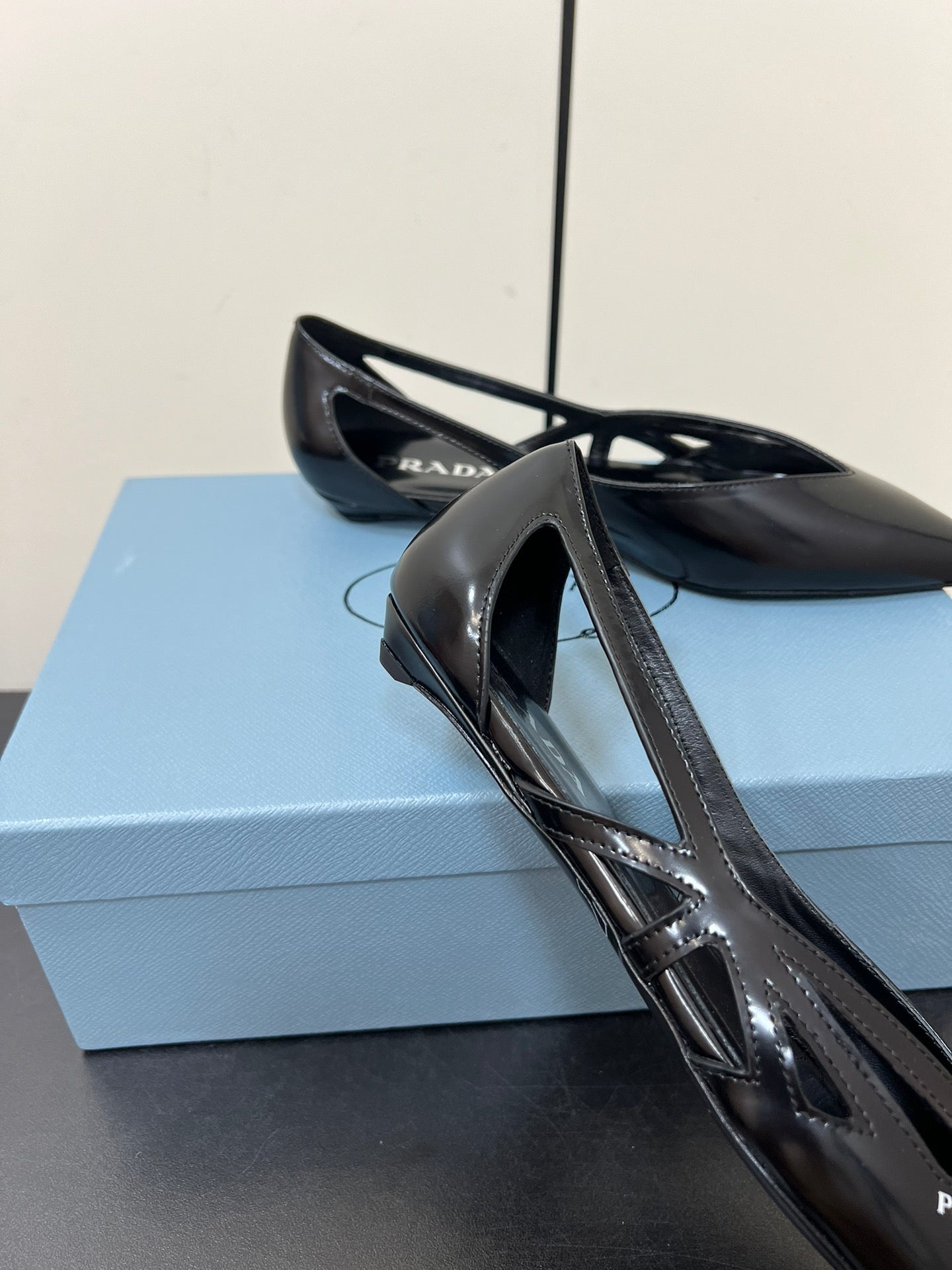 BRUSHED CUT-OUT BALLERINA FLAT IN BLACK CALFSKIN