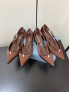 CUT-OUT PUMPS WITH BEAD BUCKLE IN CHOCOLATE BROWN SATIN