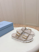 Double Buckle Strap Slides 20 Light Grey Suede