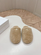 MULES ATTACHED TRIANGLE LOGO IN BEIGE SHEARLING