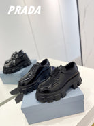 PRA BRUSHED LEATHER MONOLITH LACE-UP LOAFERS GLOSSY BLACK