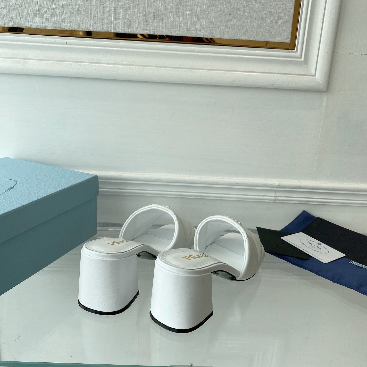 Pra Heeled Sandal 65 Square Sole Quilted White Leather