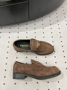 TRIANGLE LOGO LOAFER IN WOOD BROWN SUEDE