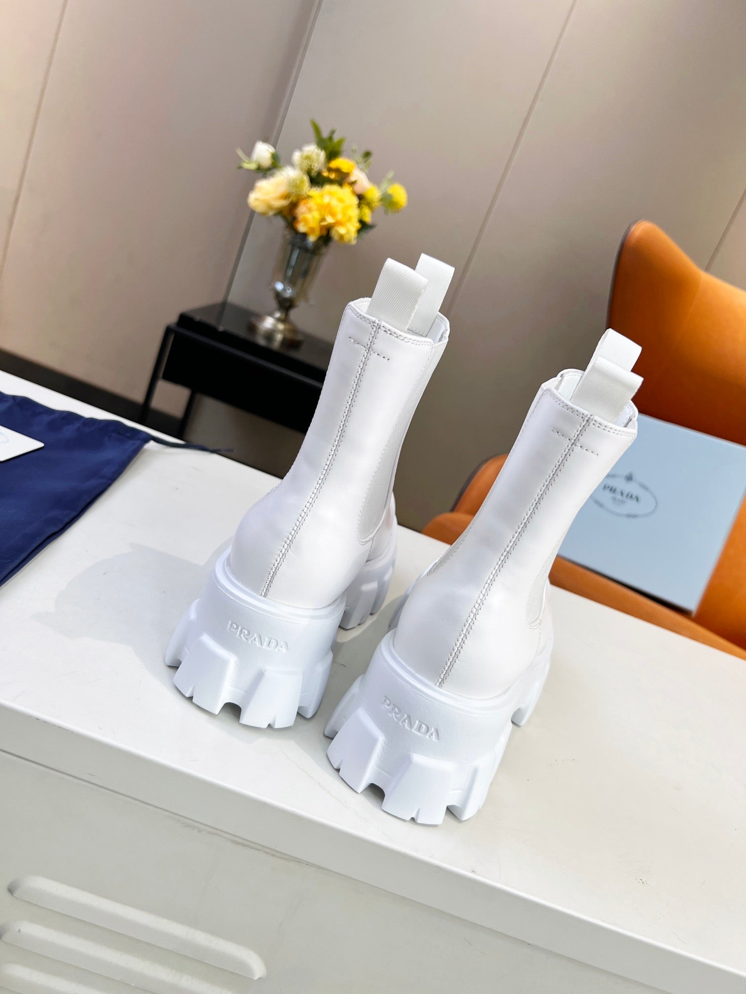 PRA MONOLITH BRUSHED BOOTIES 55 WHITE CALFSKIN