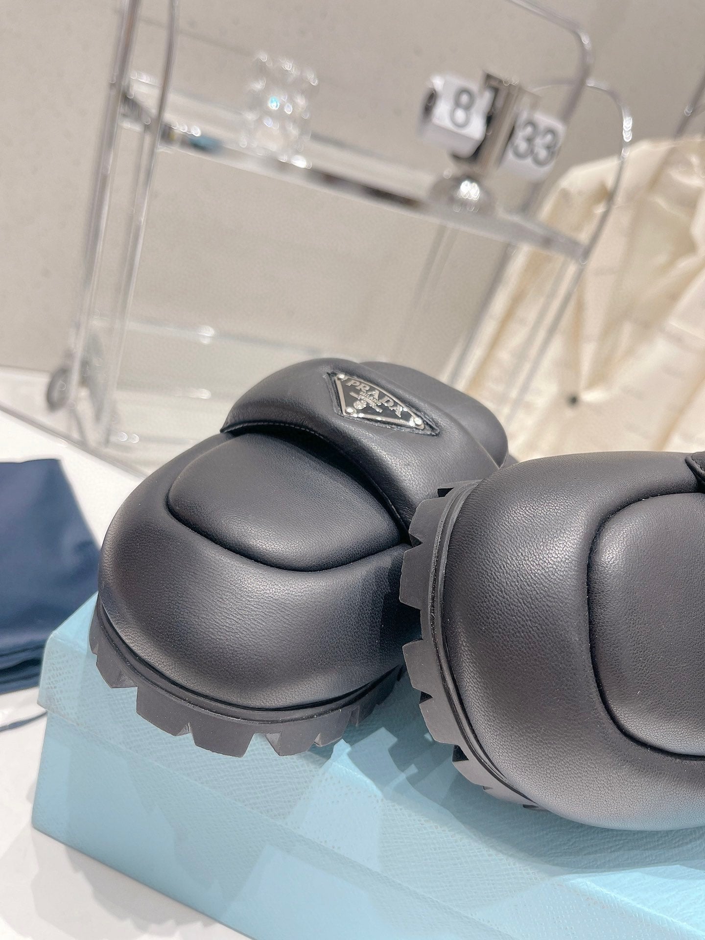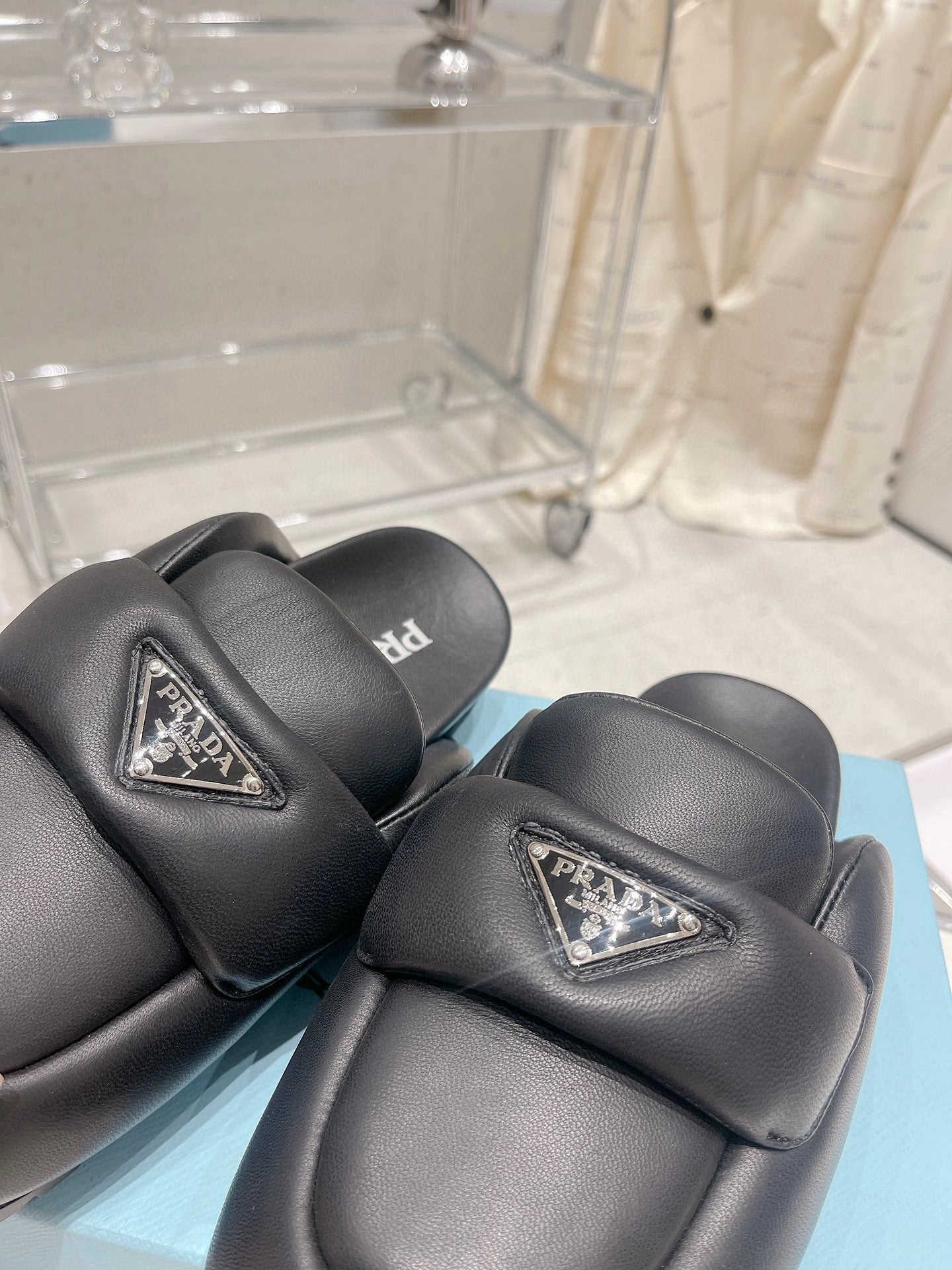 PRA SOFT PADDED NAPPA SHEARLING MULES BLACK LAMBSKIN