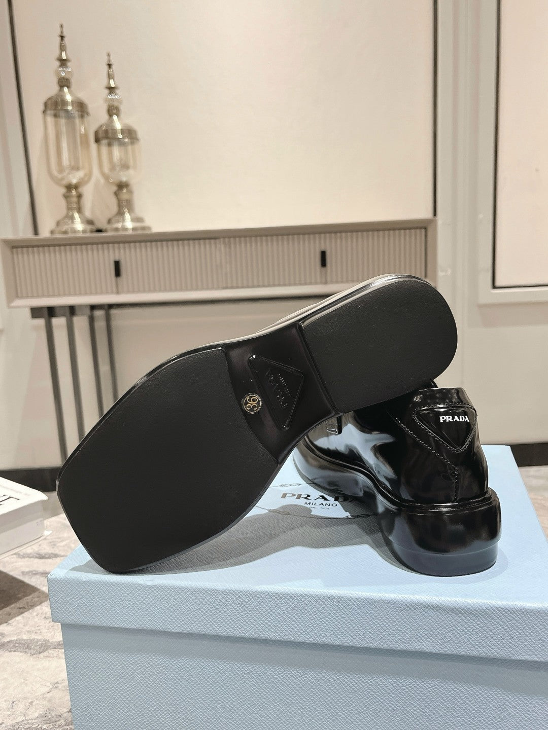 PRA SQUARE HEAD LACE-UP LOAFERS GLOSSY BLACK CALFSKIN