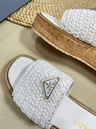 PRA WEDGE FLATFORM SLIDES WHITE RAFFIA