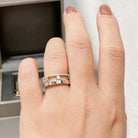 1. Using a length of string or ribbon, wrap it around the base of your finger. To ensure the ring fits comfortably, we suggest measuring your knuckle as well. We recommend selecting a size that will slide on and off your finger easily.