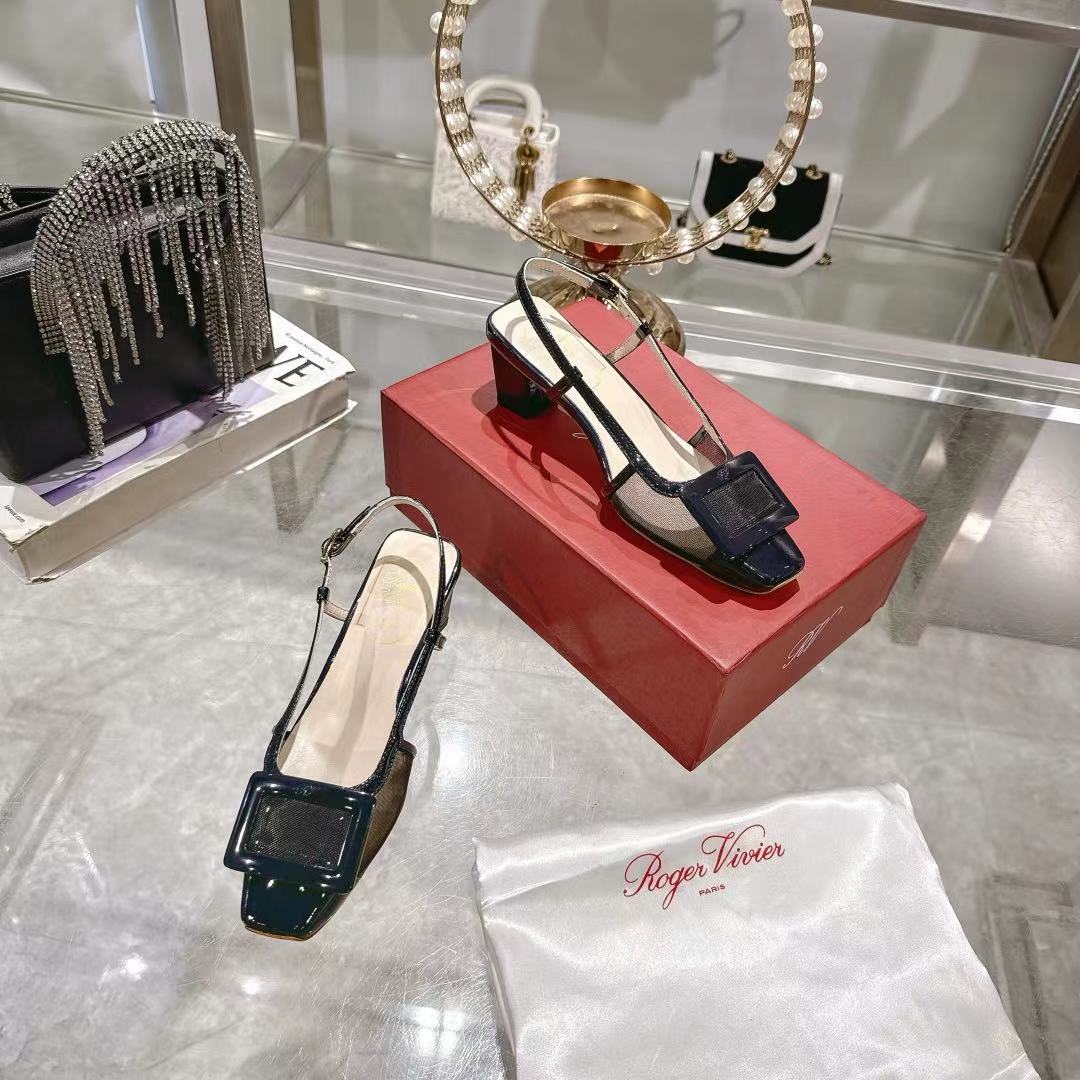 Viv 25 Slingback Navy Blue Mesh Italian Leather 300781