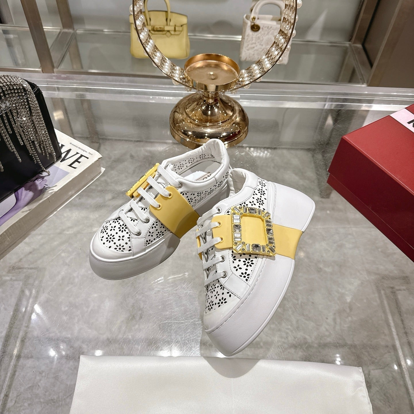 Viv 25 Square Buckle Platform White Yellow Cowhide 262976
