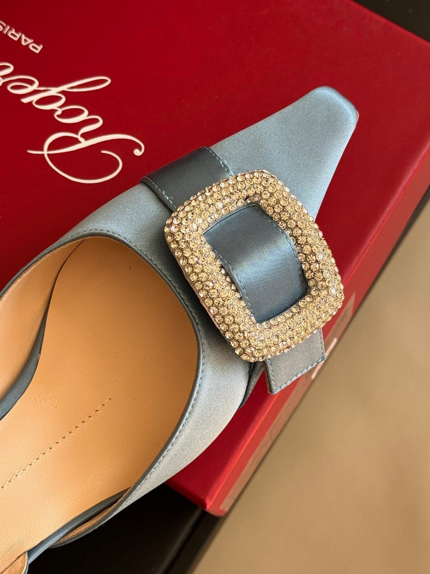 Viv Canard Slingback Pumps 55 in Light Blue Satin