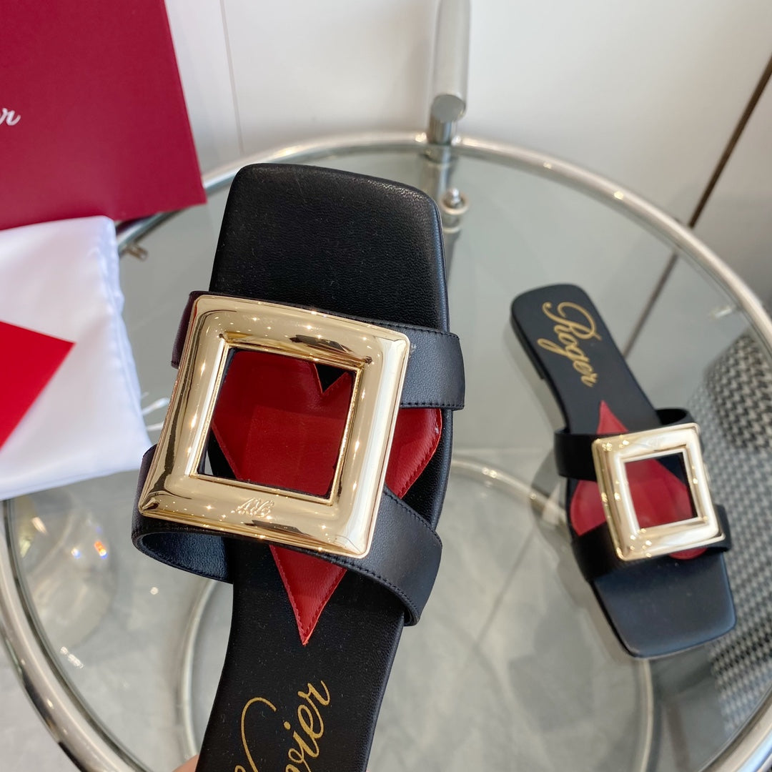 Viv Love Heart Slippers Black Fetal Cowhide 255204
