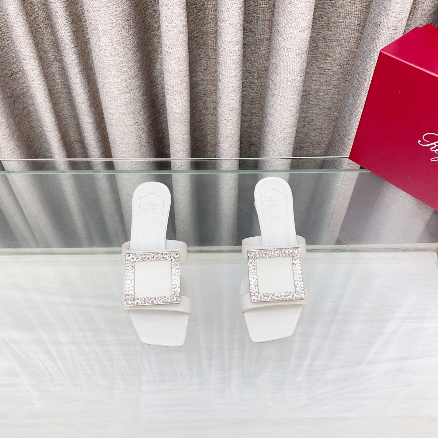 Viv 25 Diamond Flat Slippers White Cowhide 283036
