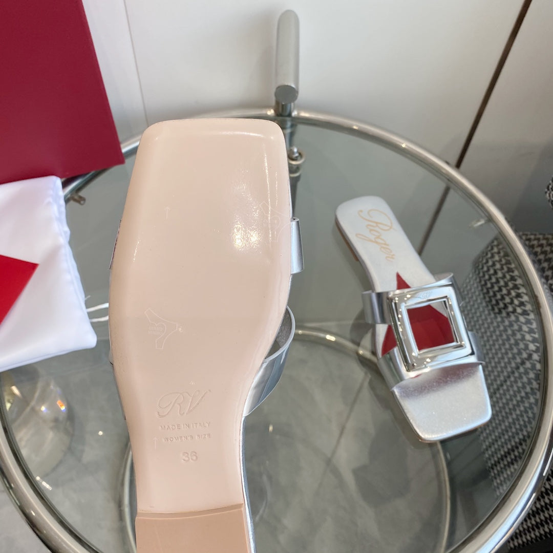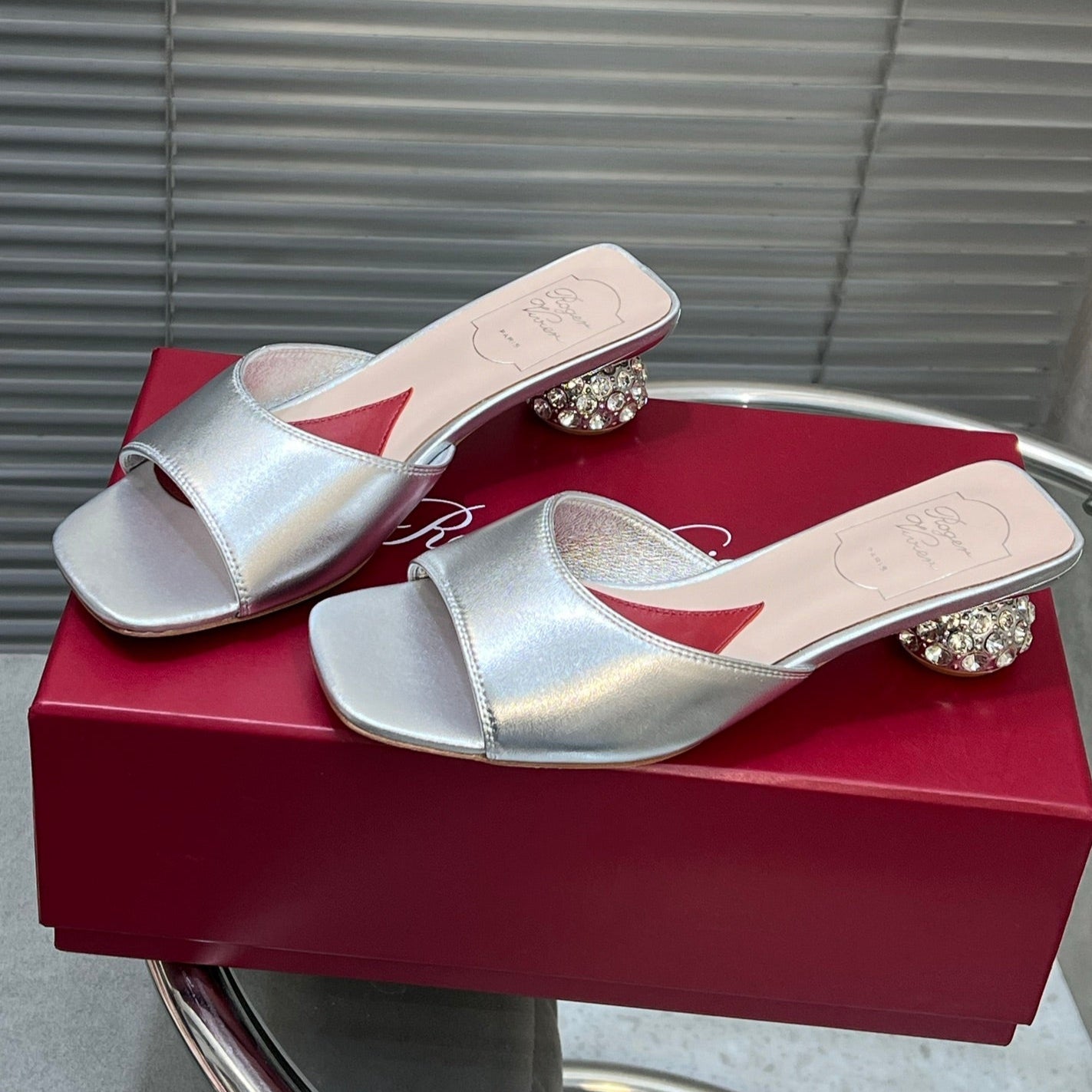Viv 25 Slidy Diamond Slippers Silver PVC Silk Cowhide 259288