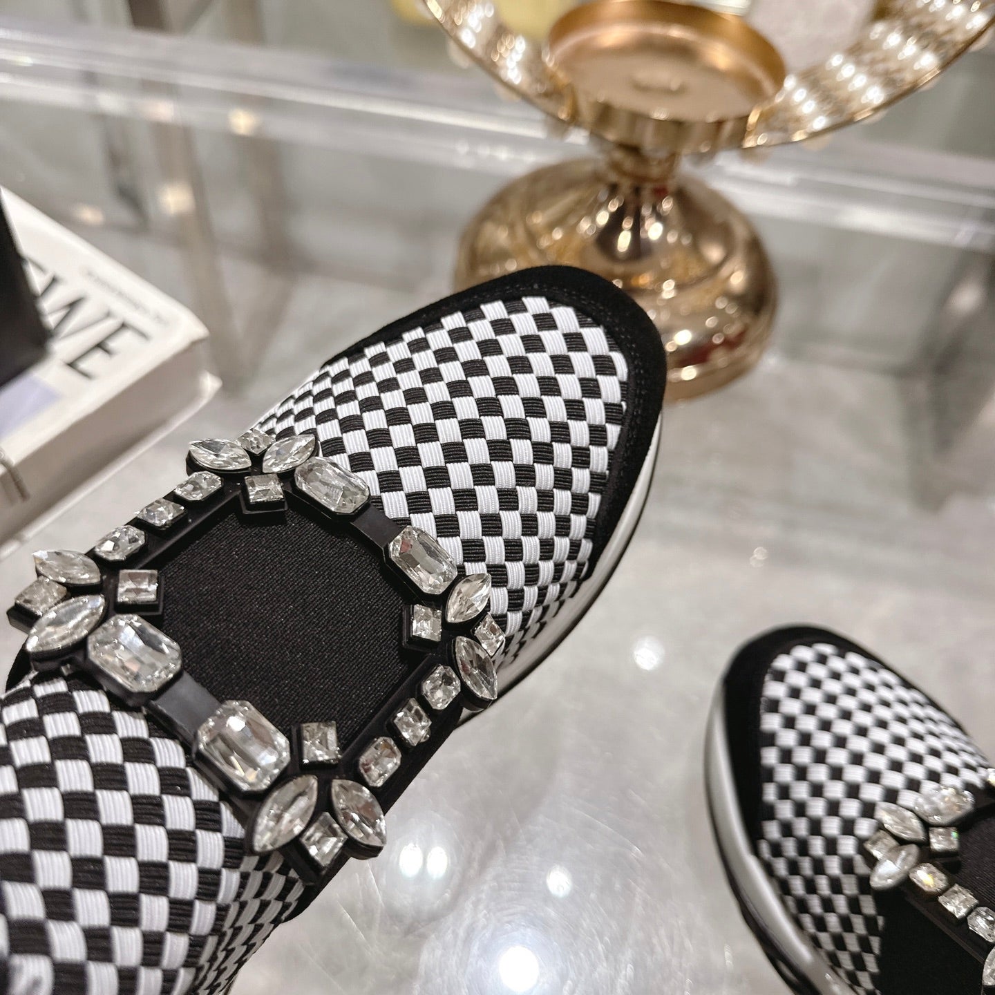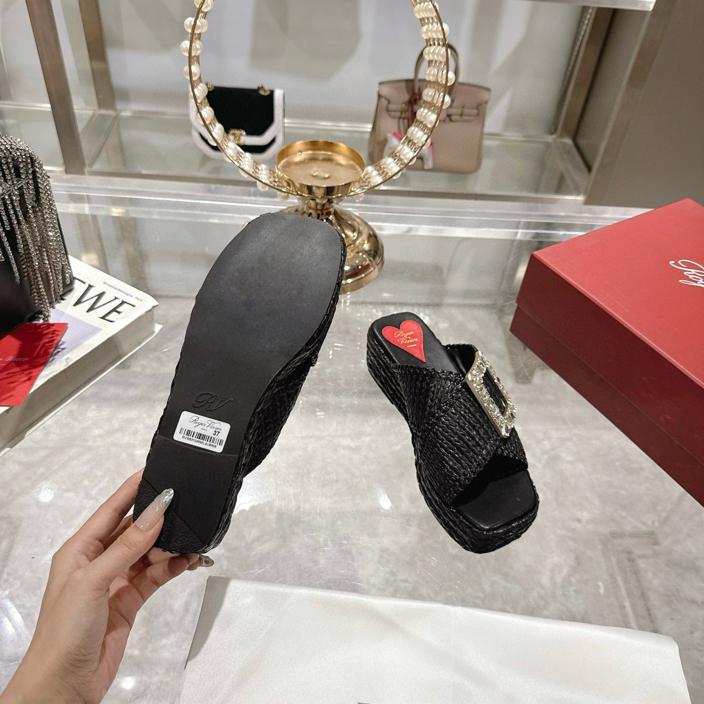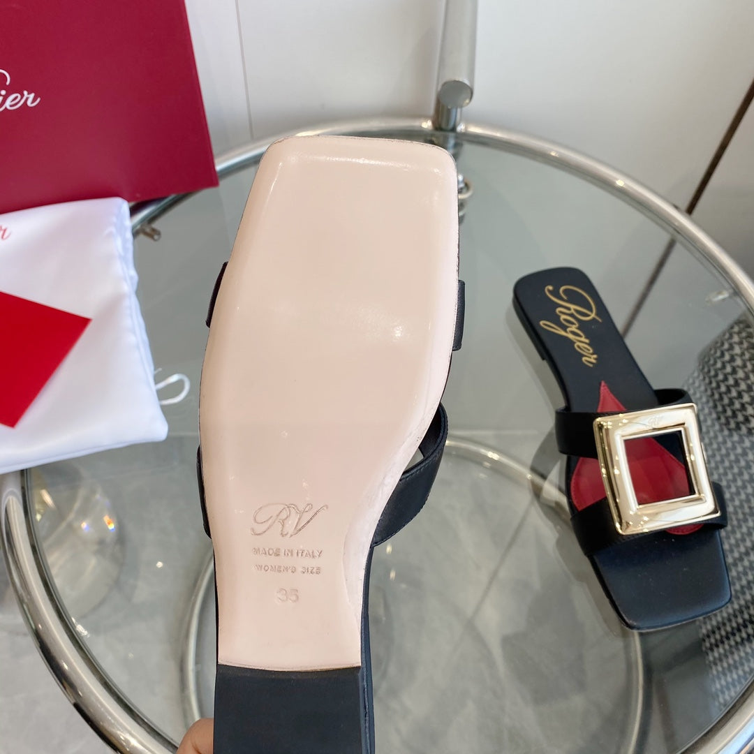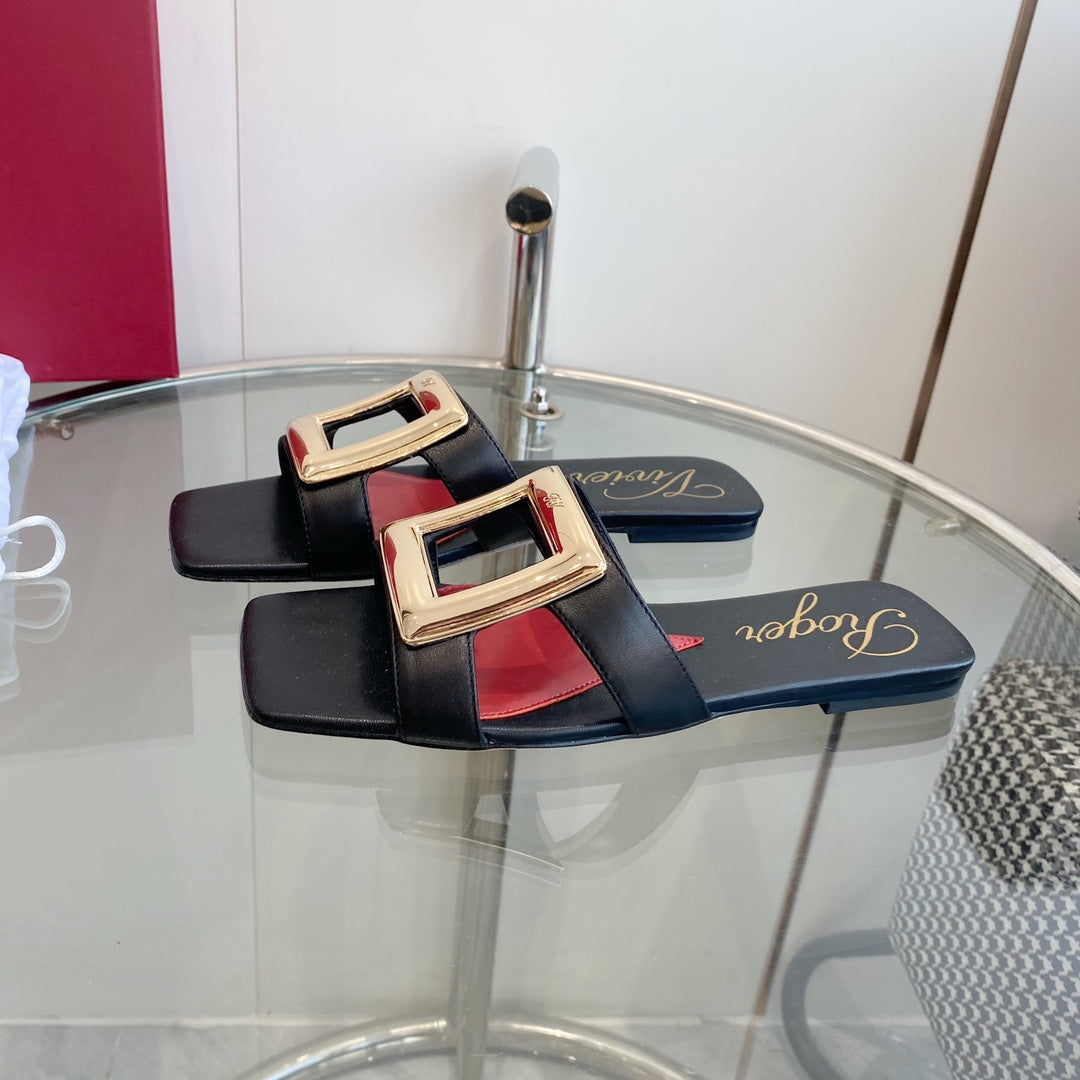 Viv 25 Hollow Square Buckle Slippers Black Weaving Leather 262999