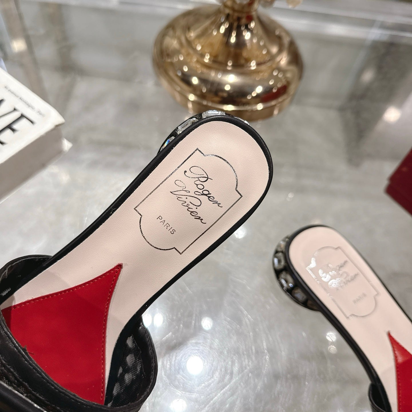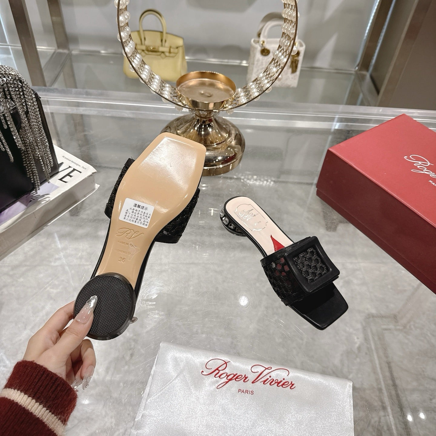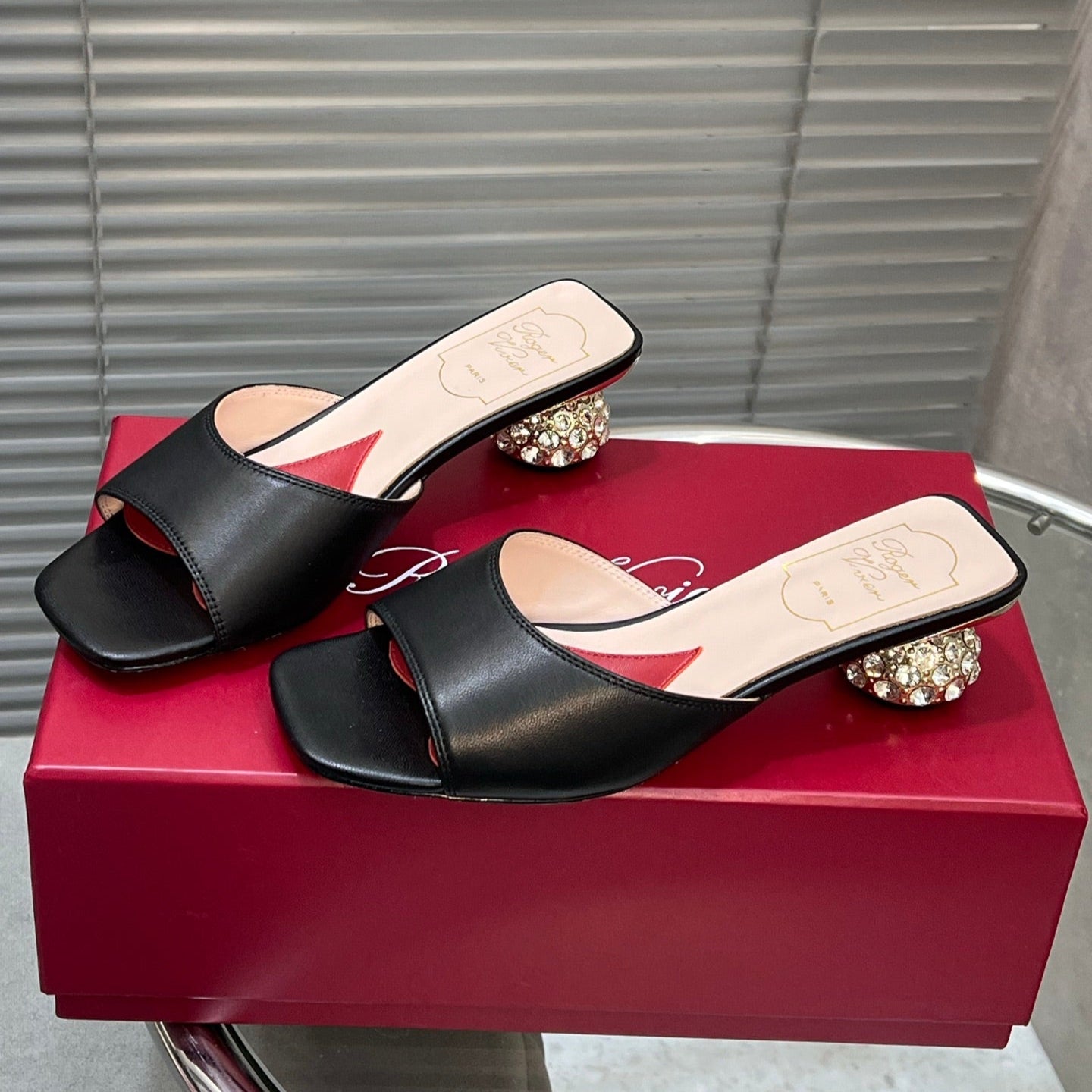Viv 25 Slidy Diamond Slippers Black PVC Silk Cowhide 259287
