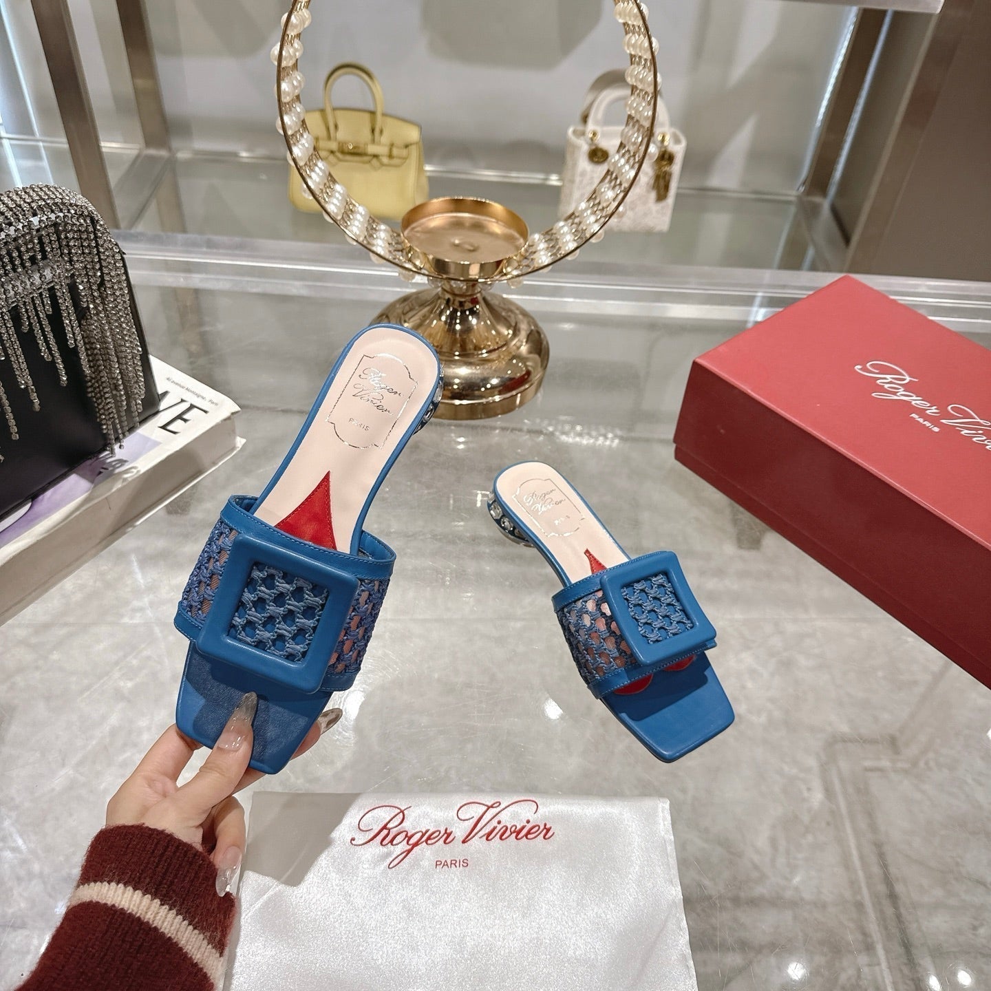 Viv 25 Slidy Slippers Blue PVC Silk Cowhide 259285