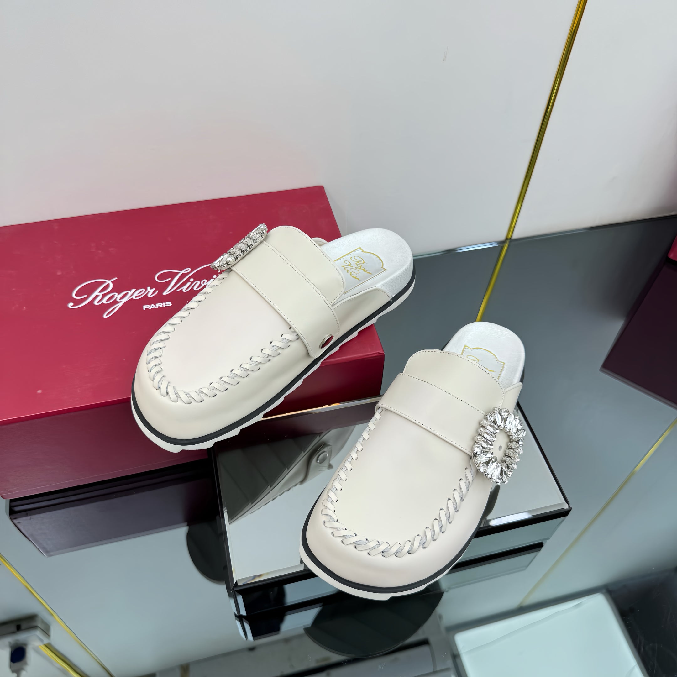 Viv 25 Baroque Rhinestone Derby Loafer Milky White Cowhide Leather 253581