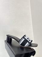 dway heeled slide 35 black embroidered cotton