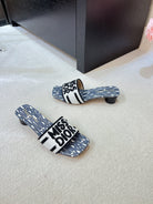 dway heeled slide 35 embroidered cotton grey miss cd alllover motif